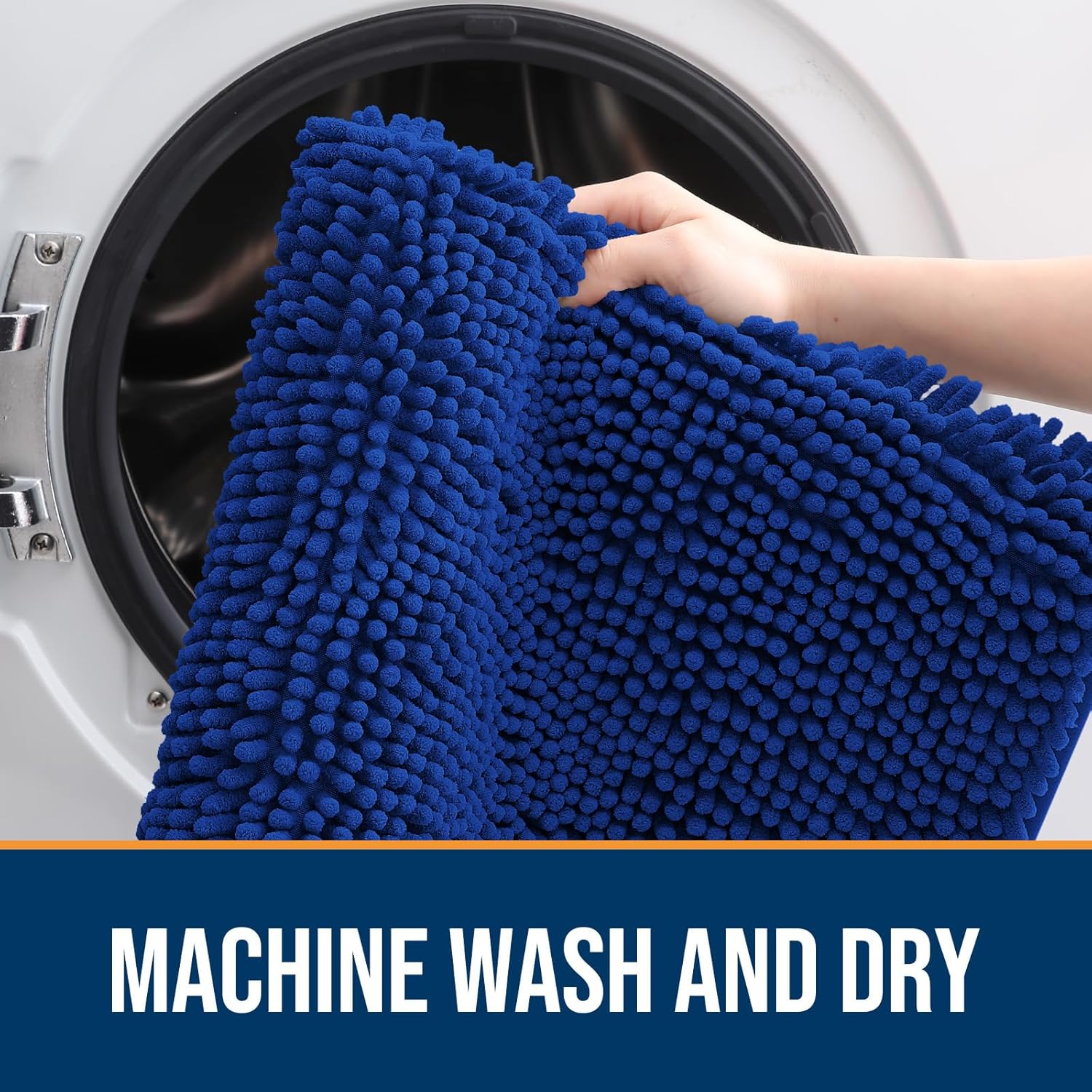 OLANLY Dog Door Mat for Muddy Paws 36x24, Absorbs Moisture and Dirt, Absorbent Non-Slip Washable Doormat, Quick Dry Chenille Mud Mat for Dogs, Entry Indoor Entryway Carpet for Inside Floor, Royal Blue
