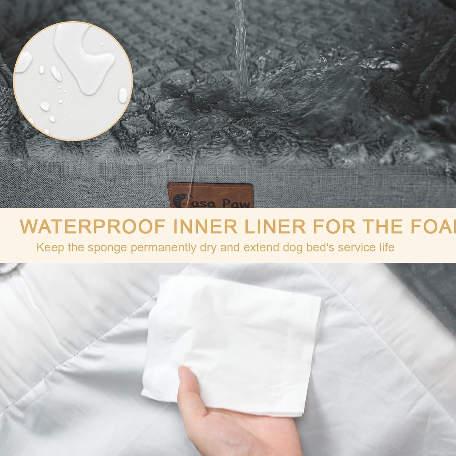 - WATERPROOF & EASY CARE: The middle waterproof layer between plush velvet surface and bottom fabric prevents urine penetration, keeping the memory foam dry and free from mold. The cover of the washable dog bed can be easily removed or combined through the tear-resistant zipper. Only the out cover supports machine washing and low-temperature drying, please take the foam and bolsters out and wash the cover individually.