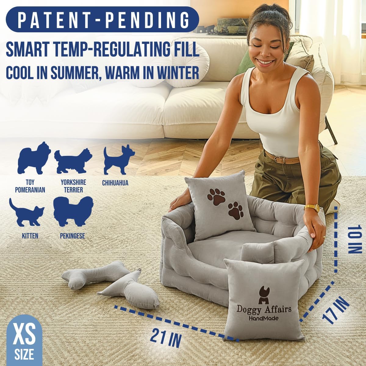 Luxury Dog Bed Chesterfield – Handcrafted Velvet Throne for Dogs | Joint Support, Calming & Temp-Regulating Comfort | Durable 5+ Years, Anti-Claw, Washable 100+ Times – XS, Gray