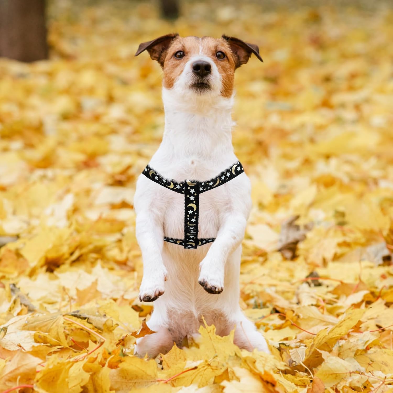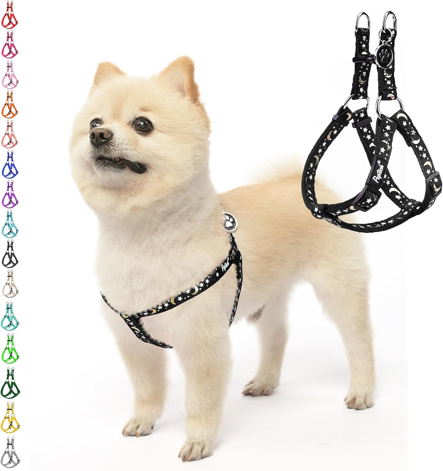 PUPTECK No Pull Dog Harness Soft Adjustable Basic Nylon Step in Puppy Vest Outdoor Walking with ID Tag, Moon Star Black, S