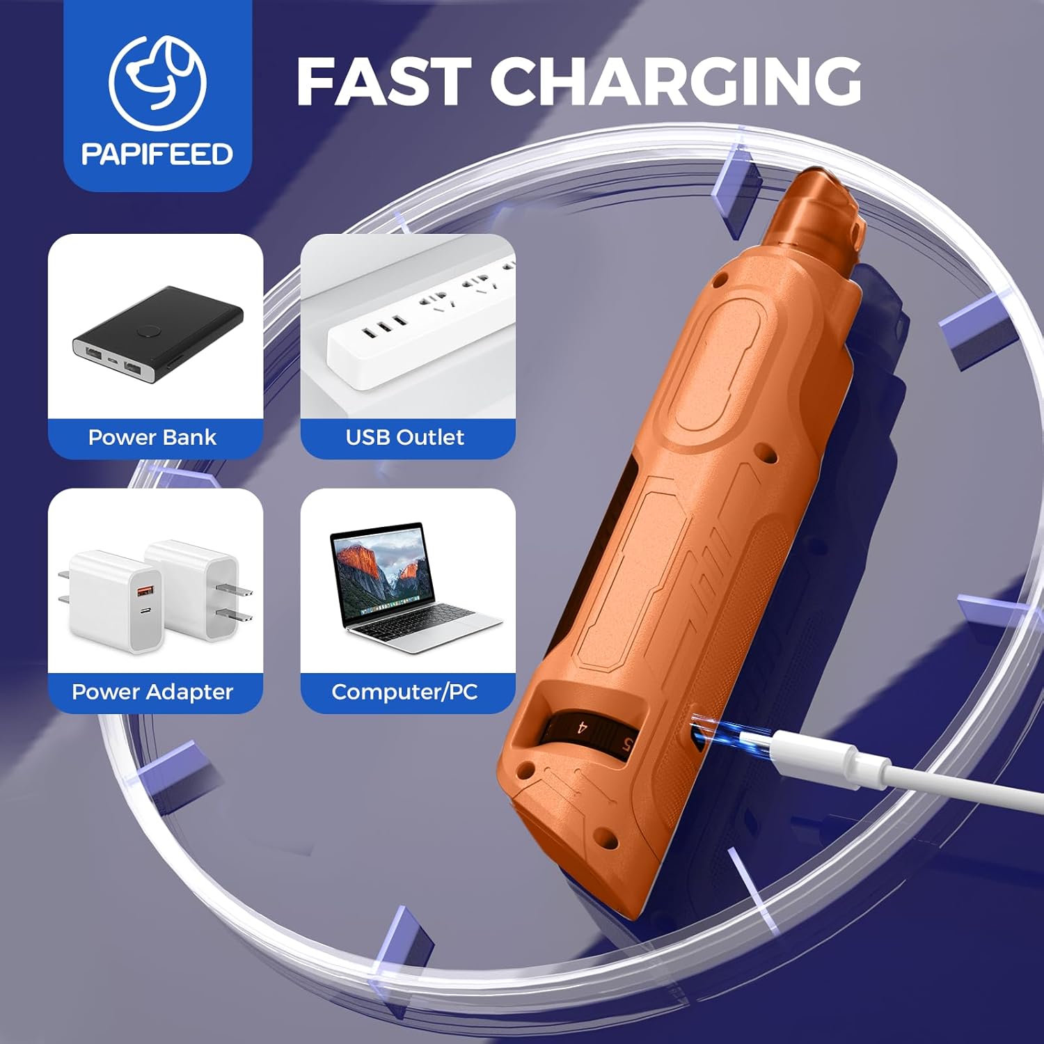 - 【Type-C Charging】The Type-C interface is compatible with mobile phone chargers, so you can charge it whenever you want, and say goodbye to the cumbersome replacement of traditional batteries. Using the PAPIFEED dog nail grinder, you can experience the convenience brought by continuous operation time and ultra-long standby time, providing an uninterrupted beauty process and flexible nail care.