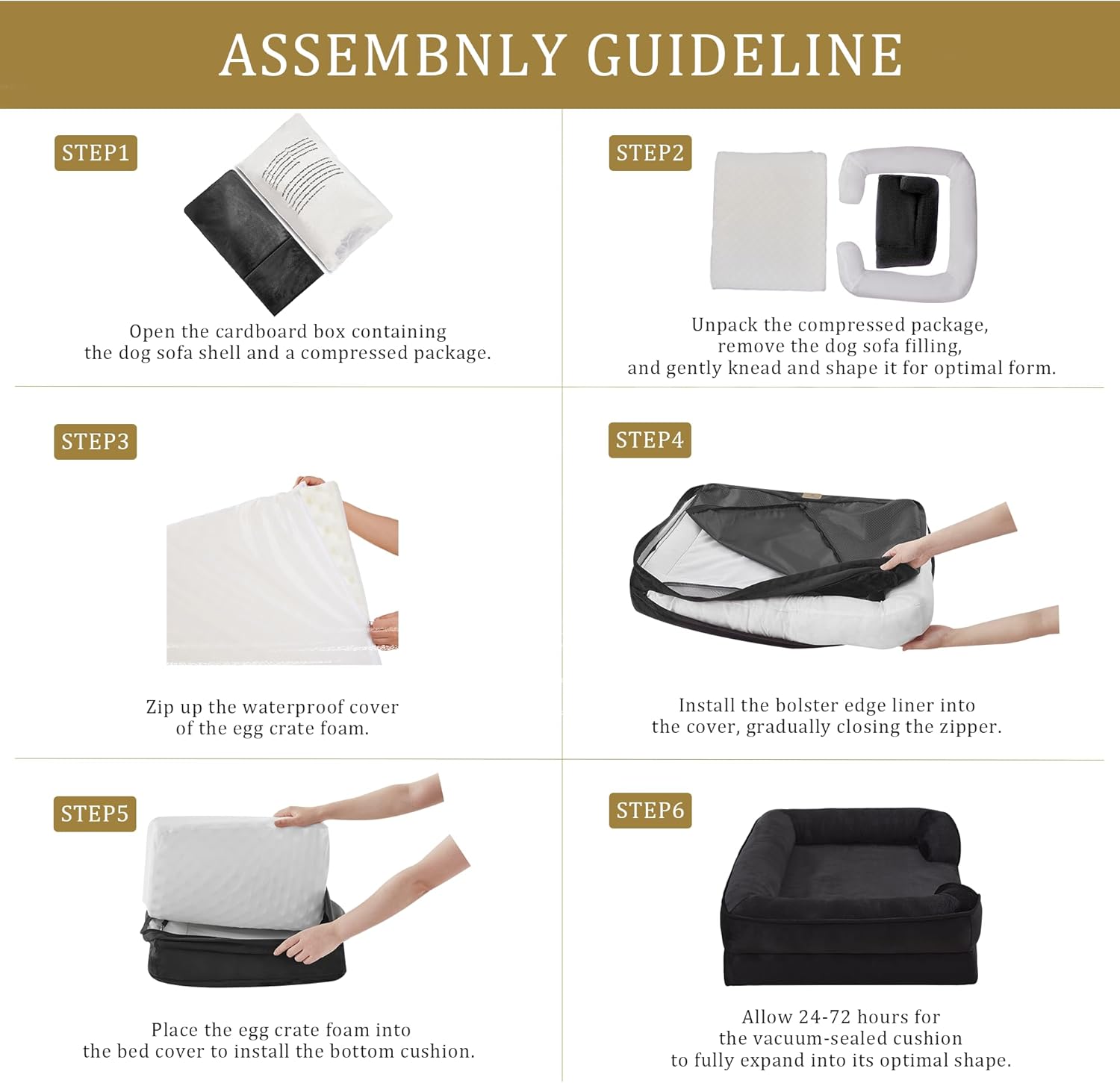 Bedfolks Orthopedic Dog Bed, Big Waterproof Dog Sofa Bed for Large Dogs, Egg Foam Pet Couch Bed with Removable Washable Cover and Nonslip Bottom, Black