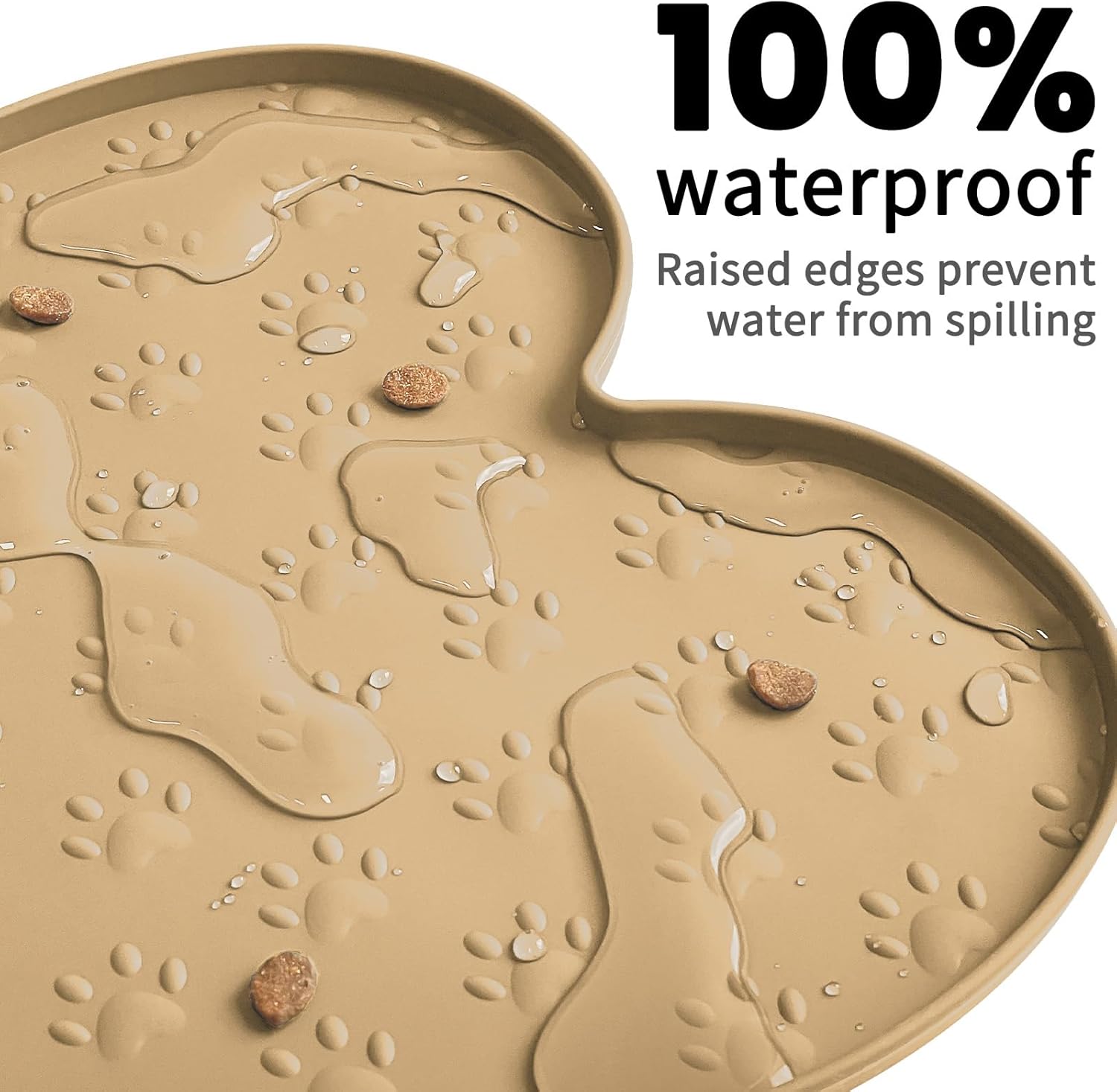 - Raised Edge - The high edge of this feeder mat keeps food and water within the tray and prevents spillage onto a clean floor. Keep your living space tidy and clean, say goodbye to messy floors, you just need to clean the dog bowl mat regularly.