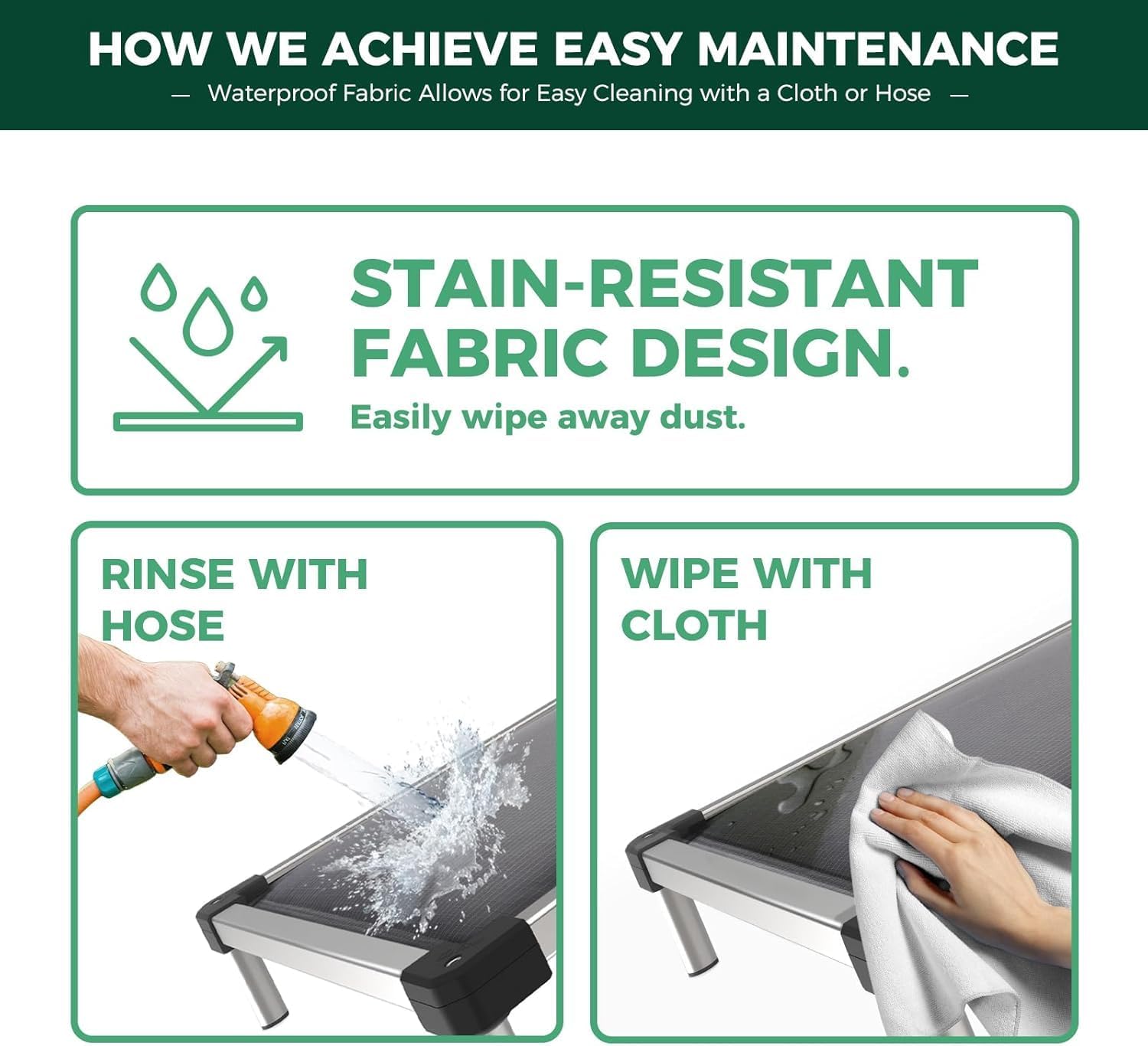 - Indestructible & Dog-Safe: Crafted with a premium aluminum alloy frame and chew-proof edges, this bed withstands aggressive chewers while keeping your pup’s gums safe and happy.