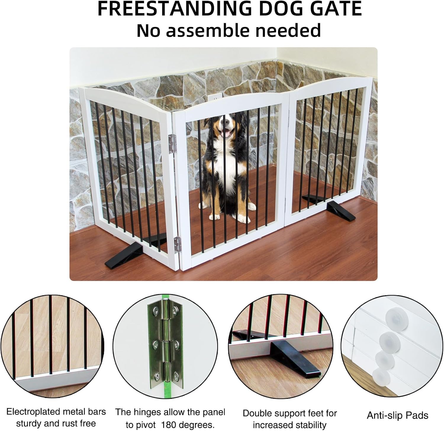 - 【3 Panels】Dog gate is built with 3 separate panels, secured together with sturdy stainless steel hinges.