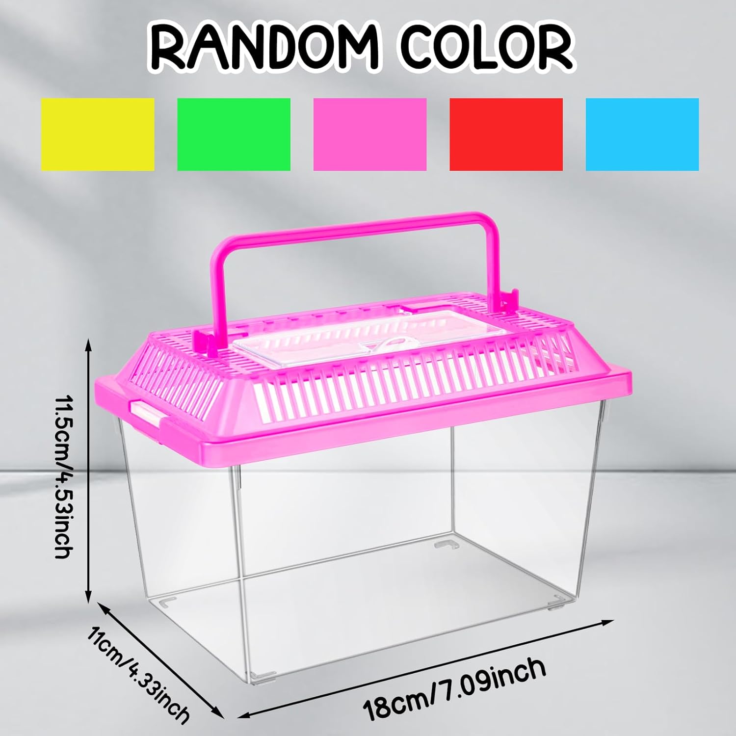 12Pcs Plastic Reptile Terrariums Carrier Cage, Tarantula Enclosure Breeding Box Hatching Container Transparent Fish Tank Turtle Aquarium with Random Color Lid for Hermit Crab, M(7" x 4.3" x 4.3")