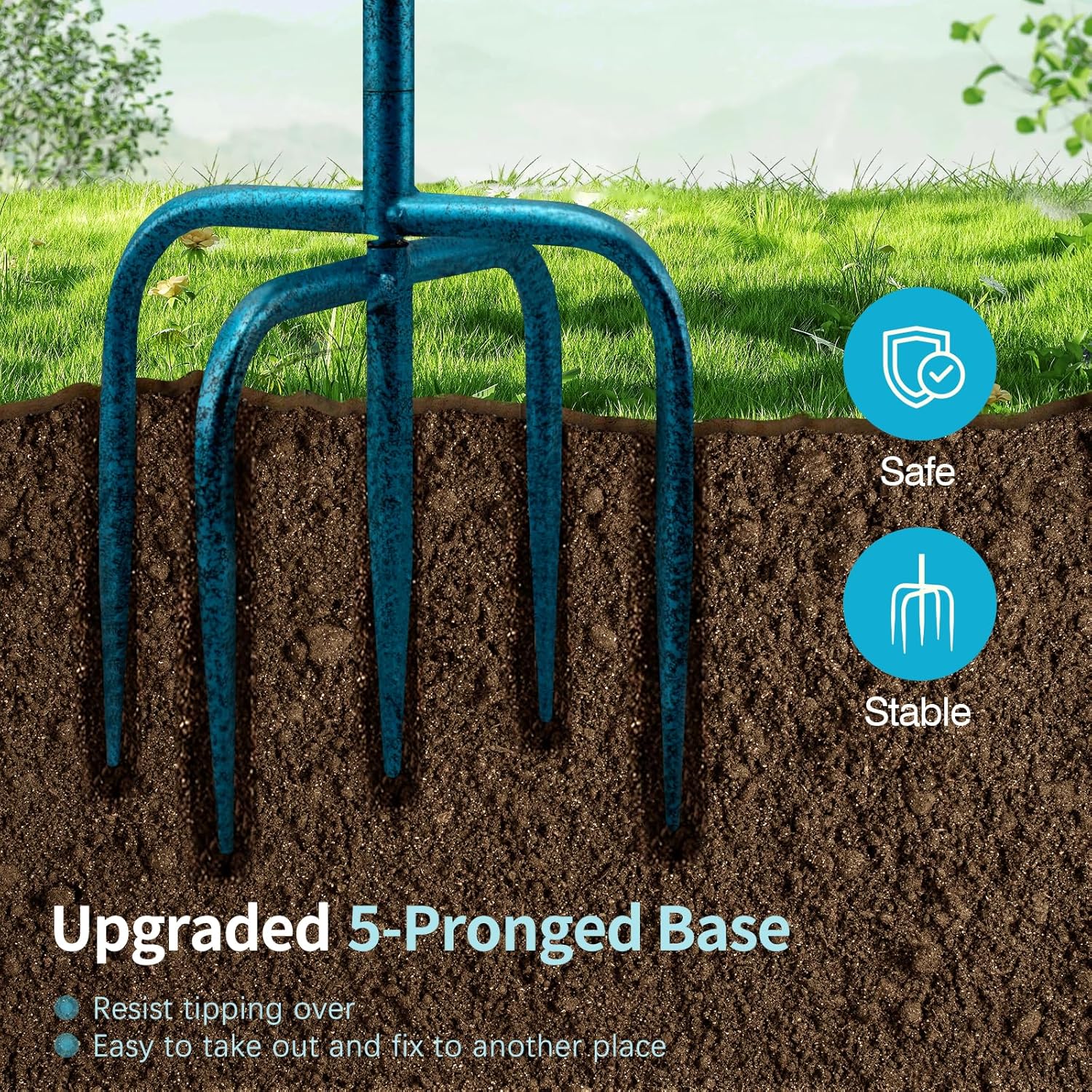 - 【New Upgraded 5-Pronged Base】Upgraded 5-forked base that resists tipping, adds more stability for this birdbath, make sure this birdbath stay in the soil of your garden upright and firmly. Heavy duty metal stake with black powder coat finish offers strong support for this bird bath, so that it is hard to bend, break or fracture.