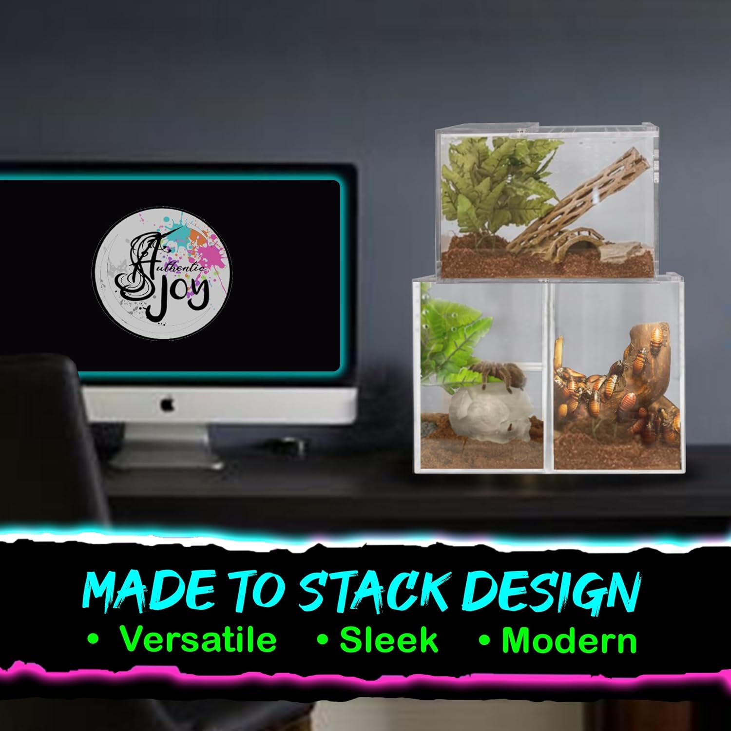 - Houses Terrestrial & Arboreal Animals: Sizing at 5”x5”x7” our critter keeper can be stacked for vertical or horizontal use which permits housing terrestrial and arboreal animals, making this an ideal adult spider terrarium. You can convert our arboreal tank into a hermit crab cage, a frog tank, snail terrarium, snake tank or a tarantula terrarium - making it a suitable home for your small pet or live insects.