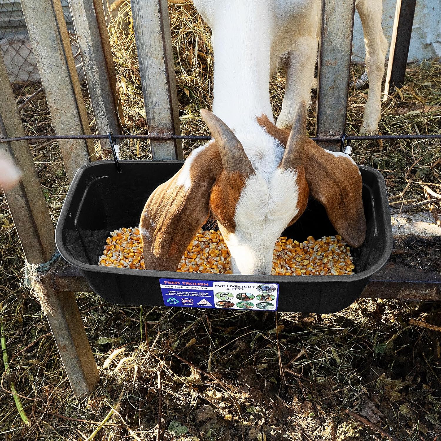 - 【Large Size Animal Feeding Trough】Compared to small animals, our trough feeder better for feeding your large goats, sheep, large dogs, cattle, pigs, deer, camelids, donkeys, mules, emus, llamas, alpacas, peacocks, chicken, duck, goose, turkey and medium or large-sized pets, poultry, livestock, etc.. Our poultry feeder is not only suitable for individual private use, but also for large-scale animal breeding. (Appearance Patent Product)