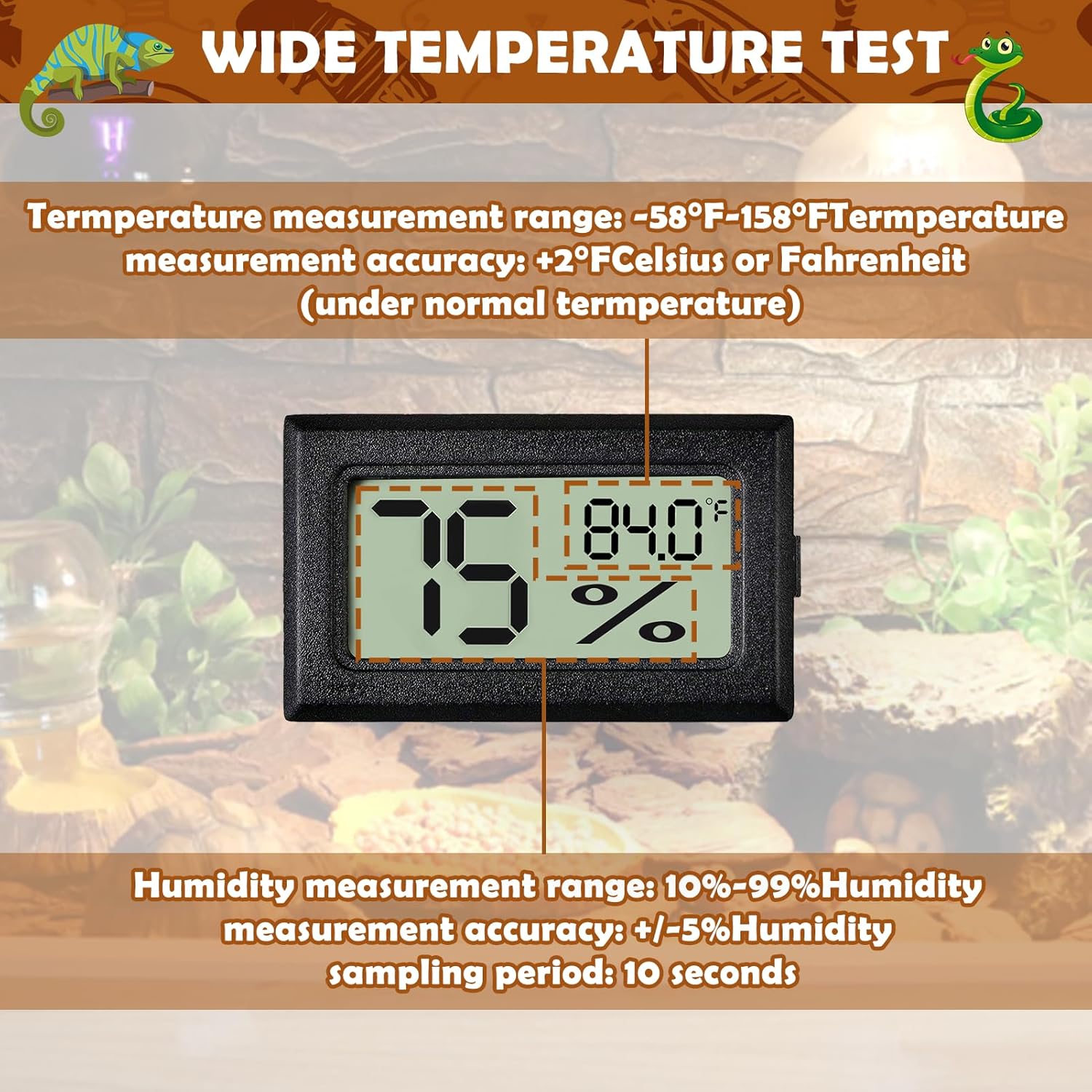 - Comprehensive Monitoring Experience: With the purchase of this kit, you will receive two humidity thermometers that can monitor multiple areas of your reptile tank or multiple containers at the same time. This gives you a more comprehensive view and control over the environmental status of your entire ecosystem without having to invest in additional monitoring equipment.