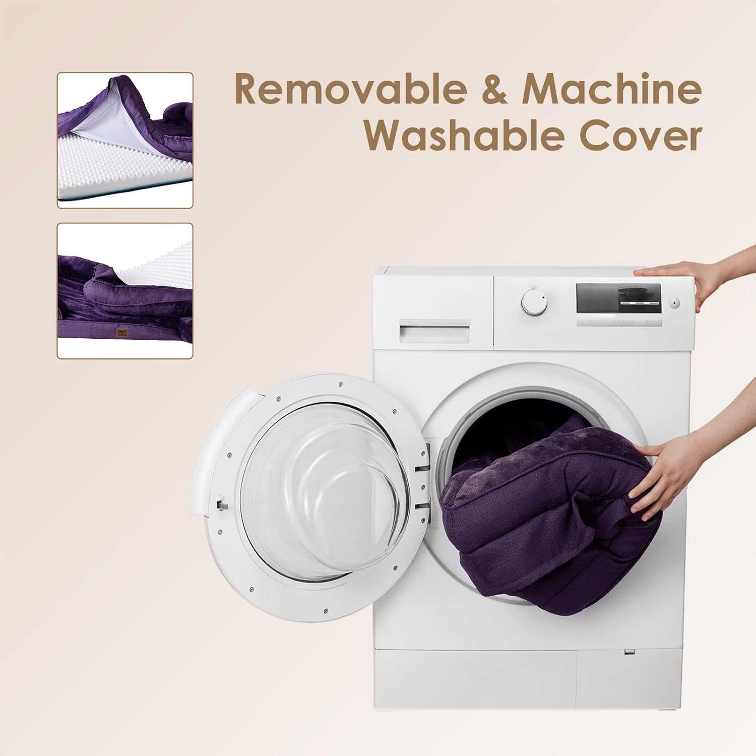 - MACHINE WASH and CARE INSTRUCTION: Our washable dog bed with removable cover has zipper closure and can be easily cleaned. Just get the foam off and it can be machine washed directly with the sides. Please note that the inner foam is not washable. After receiving it, leave it for 24-48h for rebound.