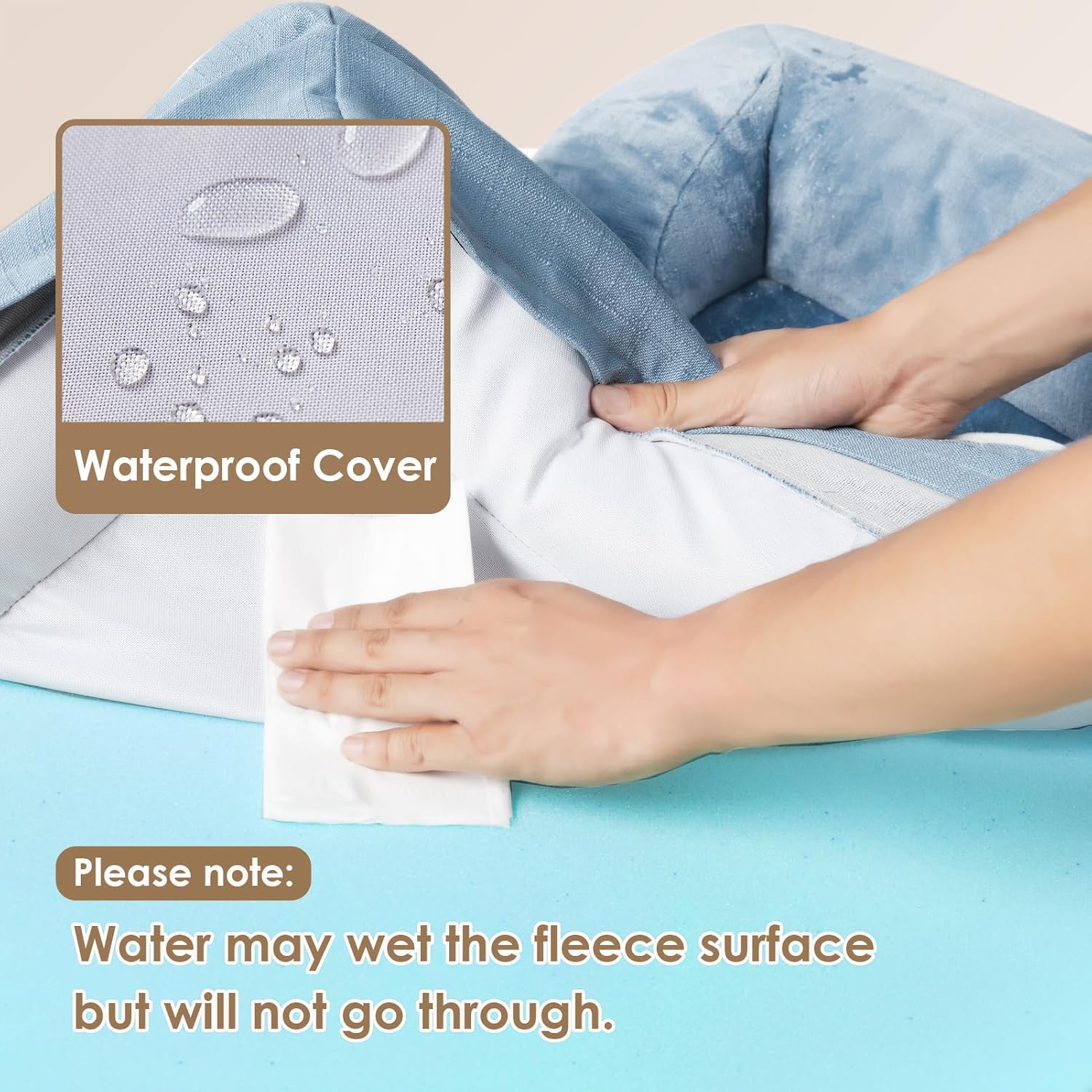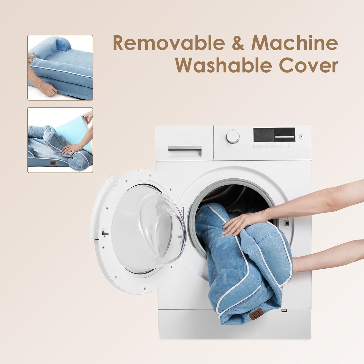 - MACHINE WASH and CARE INSTRUCTION: Our washable dog bed with removable cover has zipper closure and can be easily cleaned. Just get the foam off and it can be machine washed directly with the sides. Please note that the inner foam is not washable. After receiving it, leave it for 24-48h for rebound.
