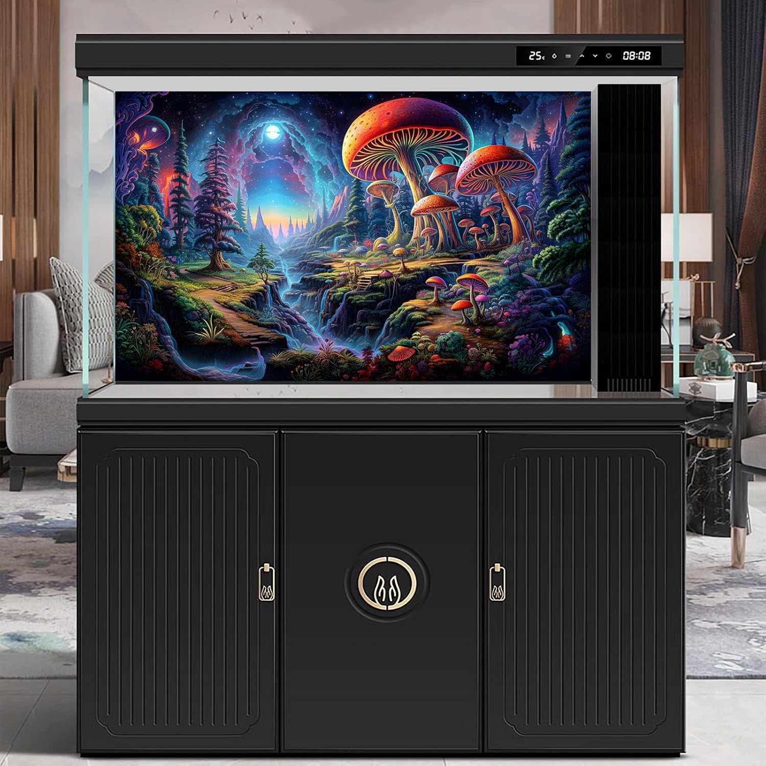 - Aquarium Backdrop Material: The Terrarium Background is made from vinyl fabric, which is lightweight, soft and delicate. The background retains its vibrant colours under aquarium lighting, ensuring long-lasting beauty and durability.