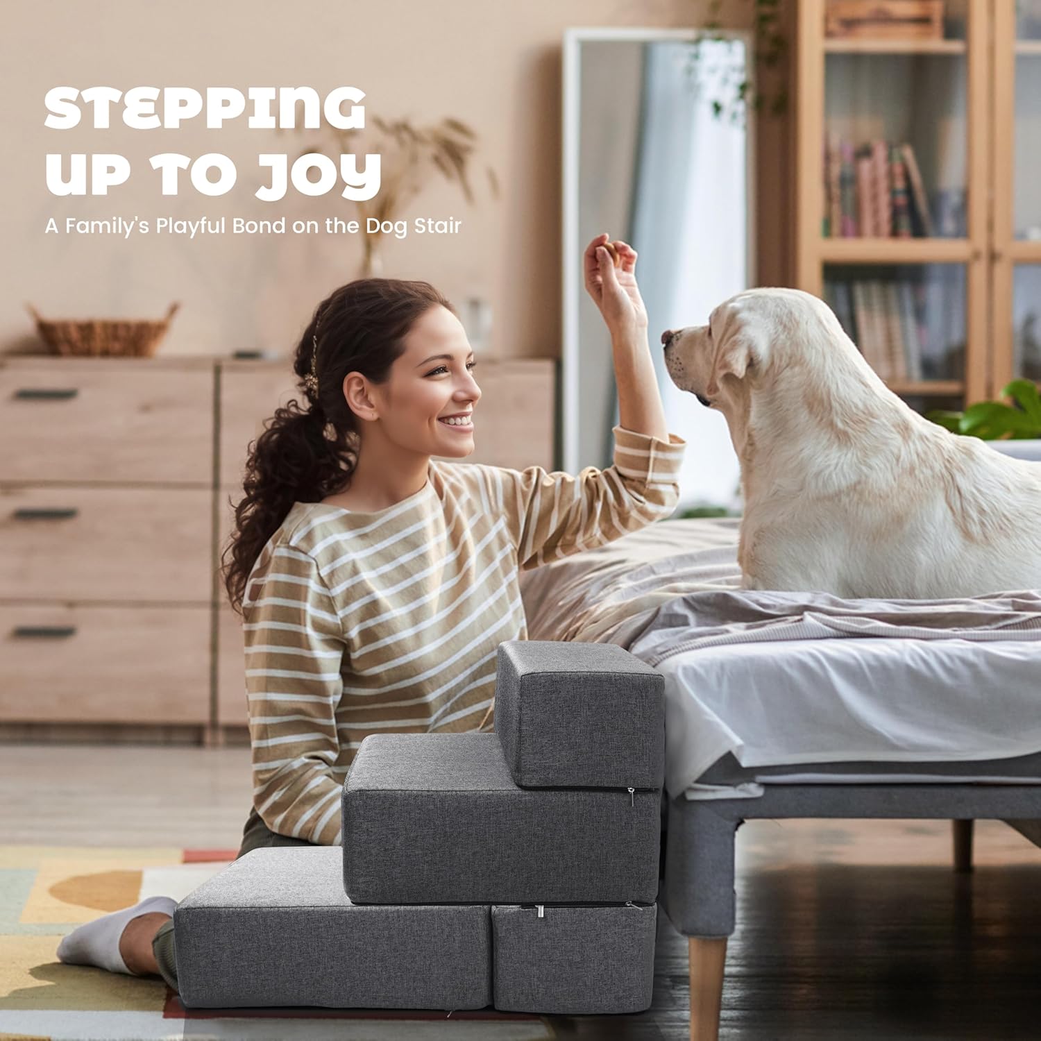 - PET COMPANION: Our pet stairs are designed with universal accessibility in mind, suitable for all pets, from kittens and puppies to senior dogs with arthritis; The supportive steps assist injured or aging animals in moving with ease, while also providing a convenient solution for owners with physical limitations, ensuring that lifting is no longer a burden