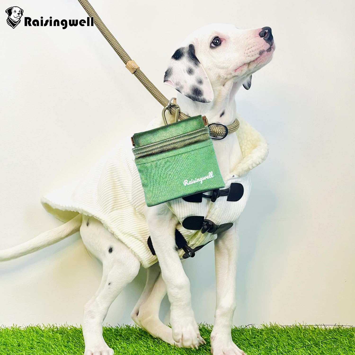 - Durable Tech Material: Raisingwell's dog treat training pouch is crafted from durable, washable, non-toxic vegan fabric, utilizing nano photonic crystal technology. In particular, the waterproof lining addresses the issue of difficult cleaning inside the training pouch.