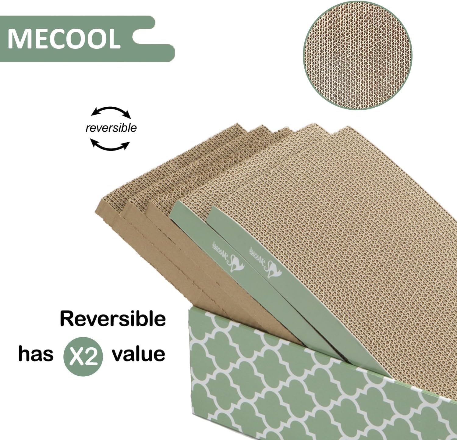 MECOOL Cat Scratching Board,5PC Cat Scratch Pad with Box,Reversible Corrugated Cat Scratcher Cardboard and Lounge Bed for Indoor Cats, Catnip