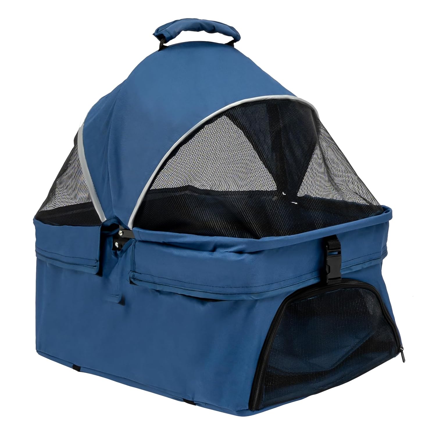 Pet Stroller, 4 Wheels Dog Cat Carrying Cart, Foldable Puppy Carrier with Storage Bag and Detachable Grid Structure for Small/Medium Dogs Cats Up to 44Lbs (Blue)
