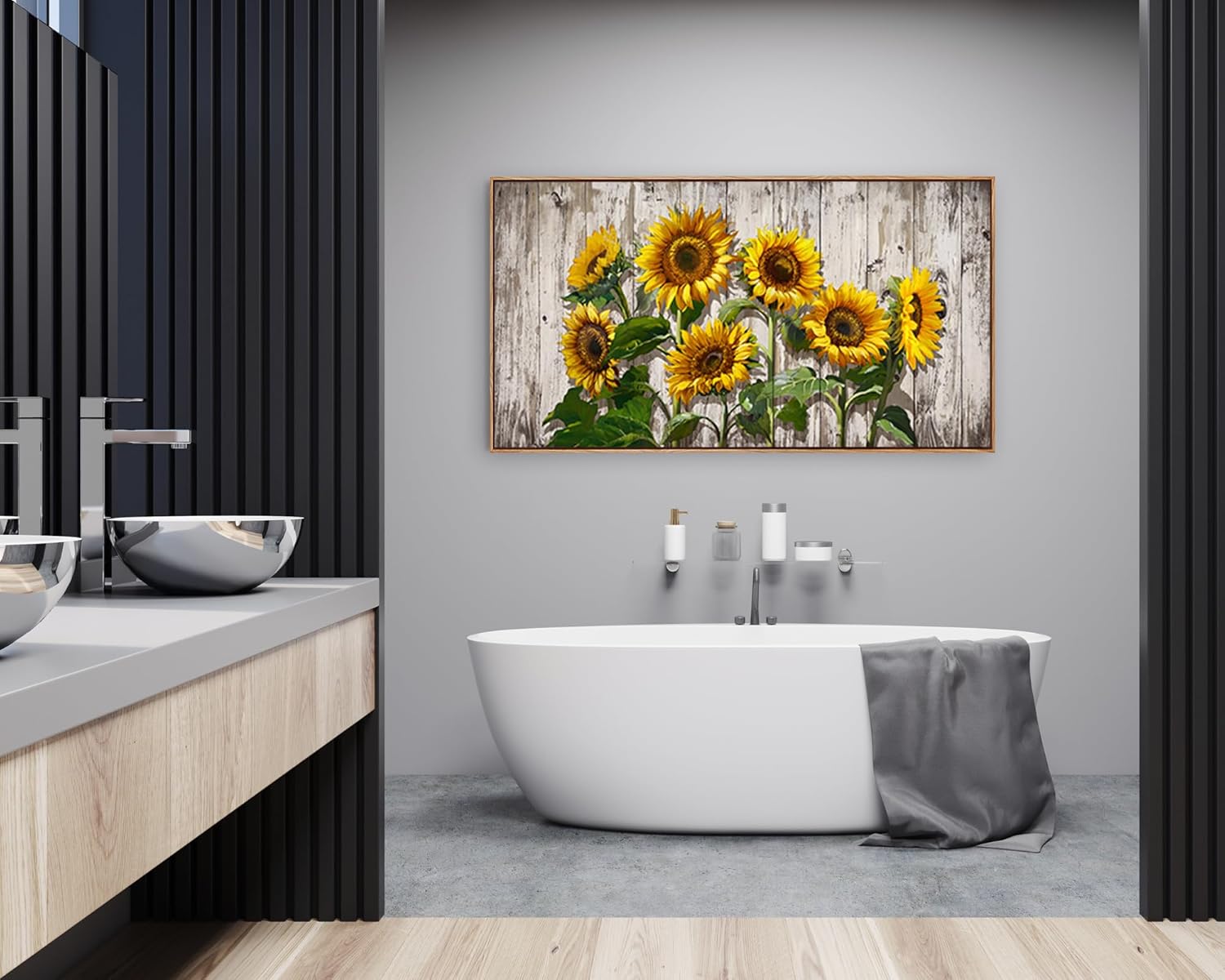 Jiuqinghua Canvas Prints Wall Art Abstract Board Paintings 1 panel Wall Art for Bedroom Rustic Sunflower Kitchen Decor Yellow Vintage Wall Decor Sunflowers Wood Grain Framed for Living Room Bedroom