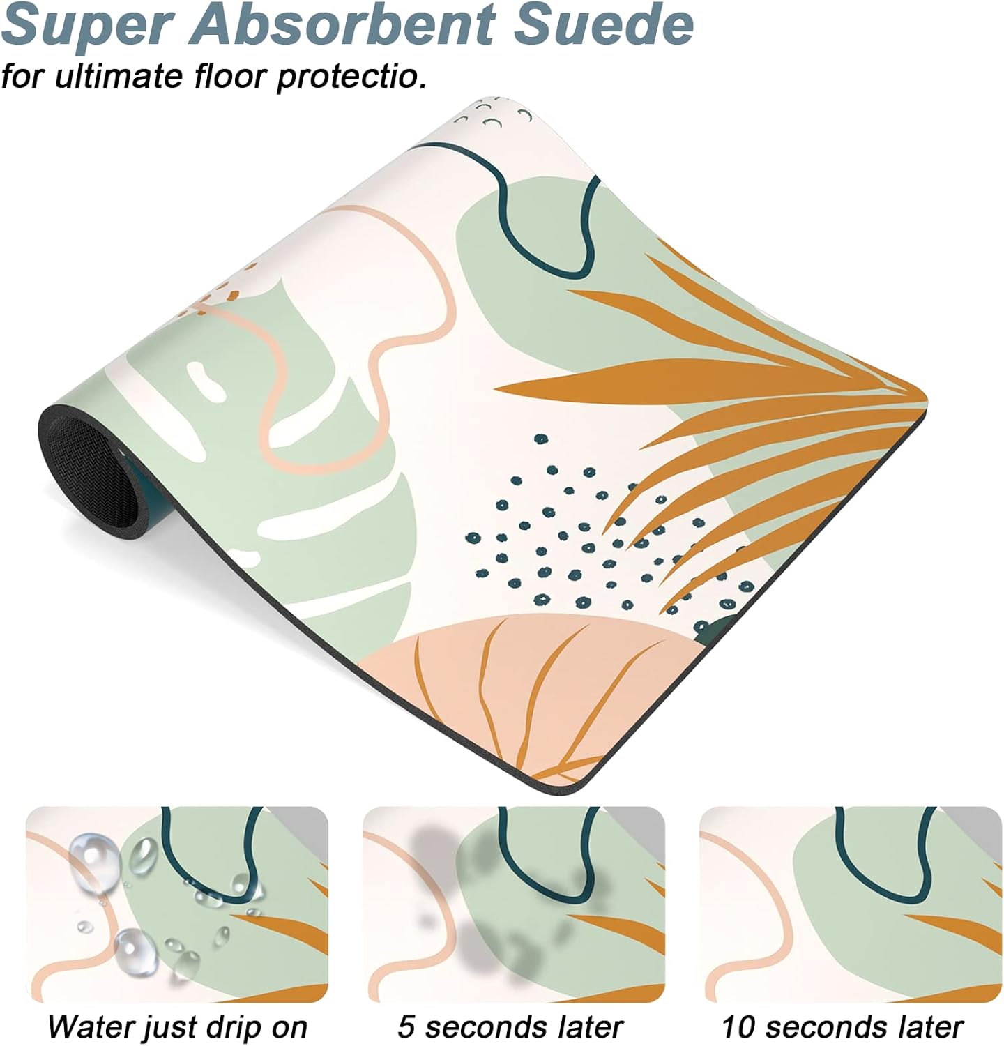 - Super Absorbent Placemat: Aesthetic dog food mat surface is made of absorbent suede with soft, anti-fray which can quickly absorb liquid and wet food stains to prevent prevents food & water from spilling onto floor