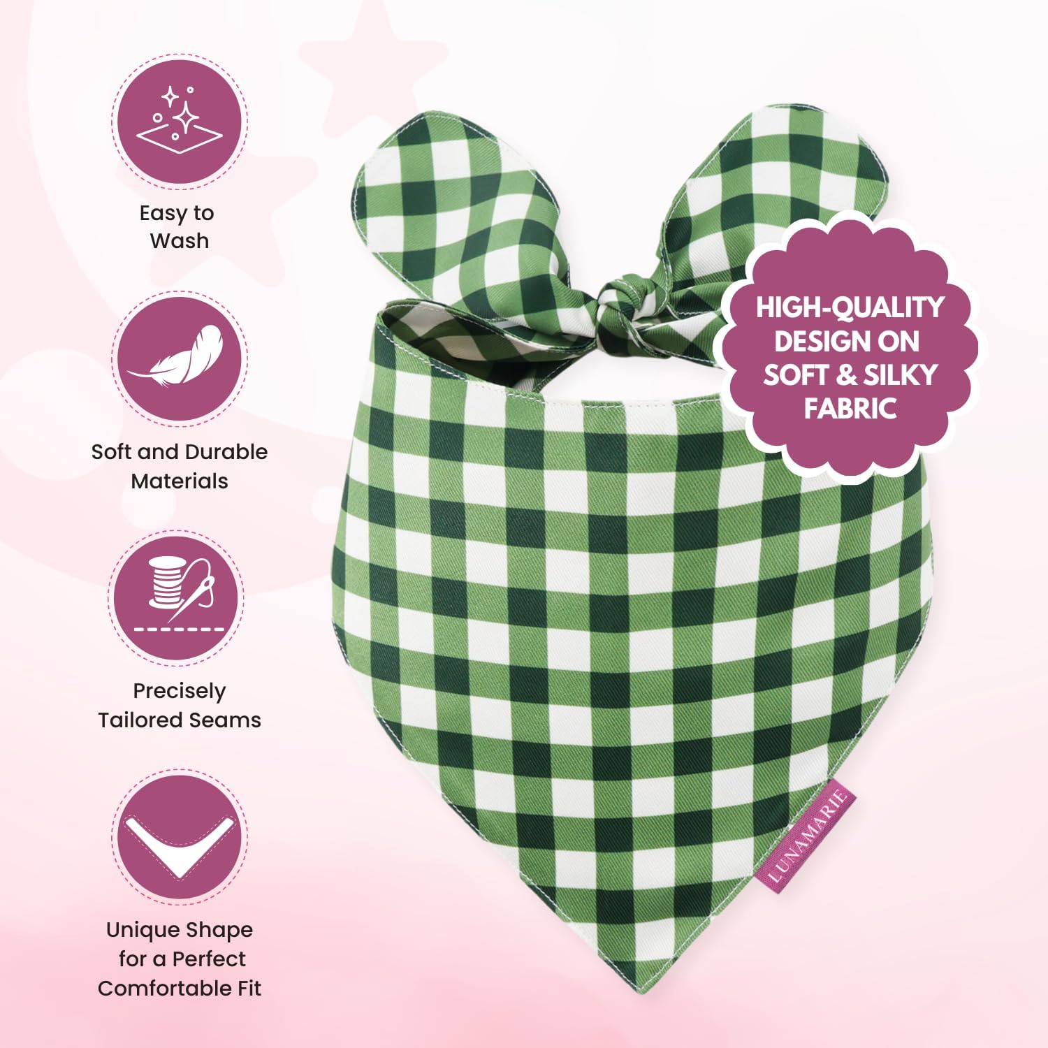 LunaMarie - Luxury Pet Birthday Bandanas -Premium & Silky Poly Fabric | 100% Handmade | Custom Shape Dual Layered (Olive, Large)