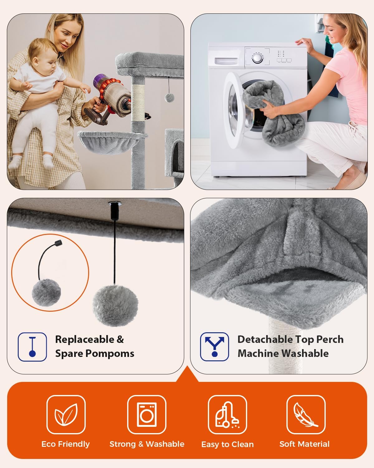 - Reliable Quality: Stability and safety are always the key points. Crafted by soft plush fabric, CARB-certified natural particle boards, firm sisal wrapped posts and strengthened base, it’s sturdy and safe for fat and heavy cats to bounce and enjoy up on their castle with ease