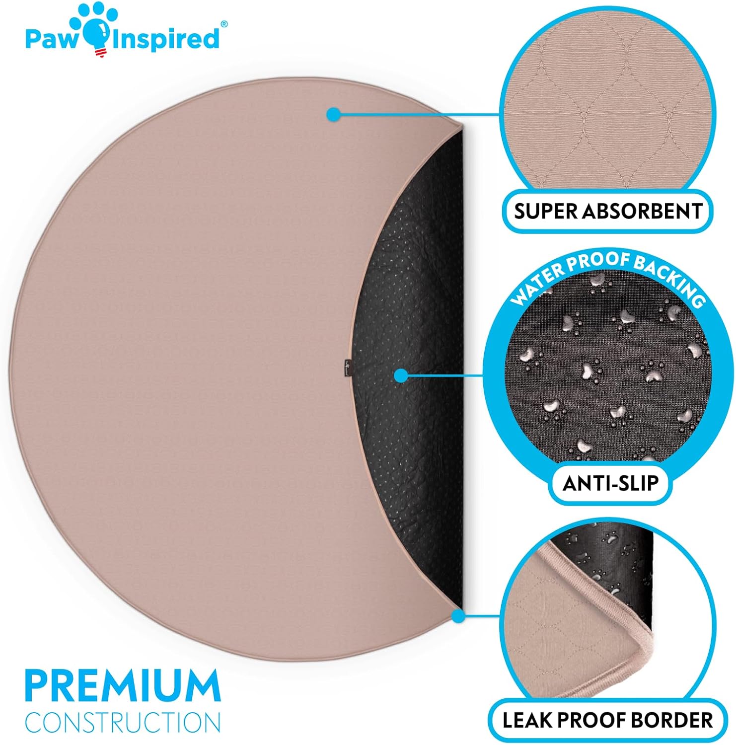 Paw Inspired Round Washable Pee Pad for Dogs | Reusable Puppy Pad for Potty Training, Whelping, Waterproof Mat | Leakproof, Non-Slip Liner (60" Extra Large Size, 1 Pack)