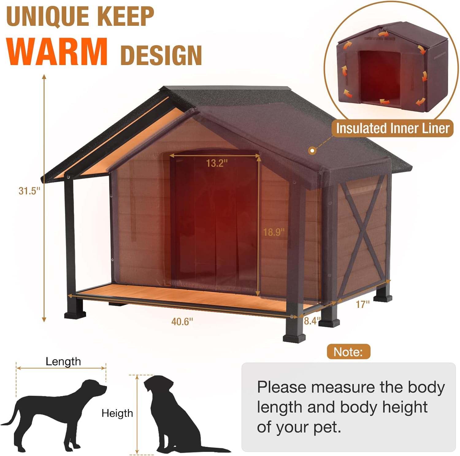 Outdoor Dog House Insulated Large Dog Kennel with Liner for Winter, Heated Dog House 100% Insulated & All-Around Iron Frame