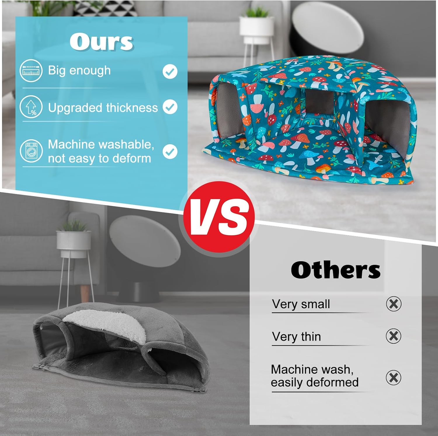 - Machine Washable: The guinea pig hideout is made of short plush and high-density elastic sponge; Not only is it very soft to the touch, but also more comfortable and warm, the fabric is thick enough to hold its shape and stay upright after many washes