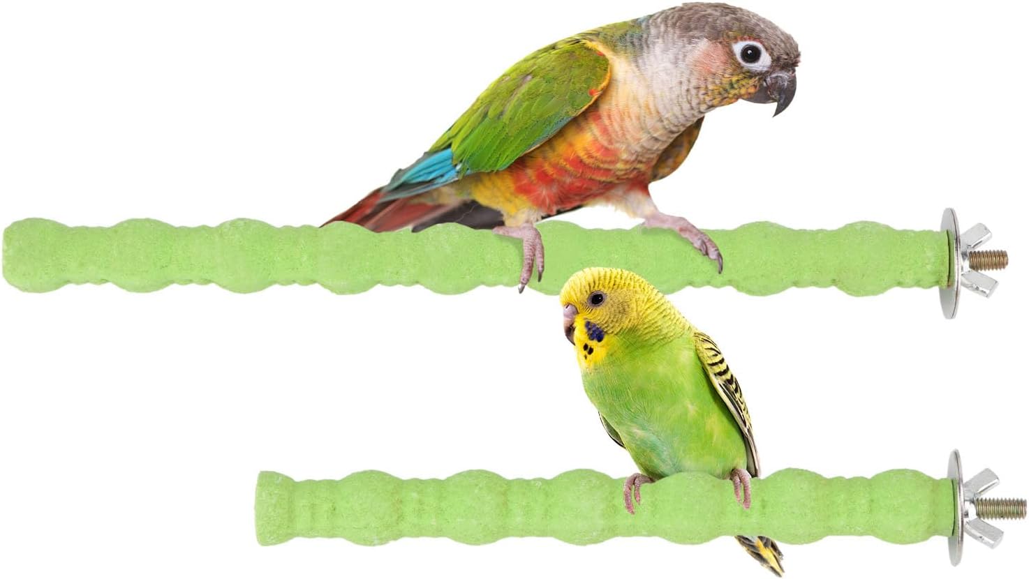Hypeety 2PCS Bird Wood Perch Stand Parrot Paw Grinding Stick Toy Pet Bird Cage Stand Platform for Bird Parrot Budgies Parakeet Cockatiels Cage Accessories (7in/10in) (Green)