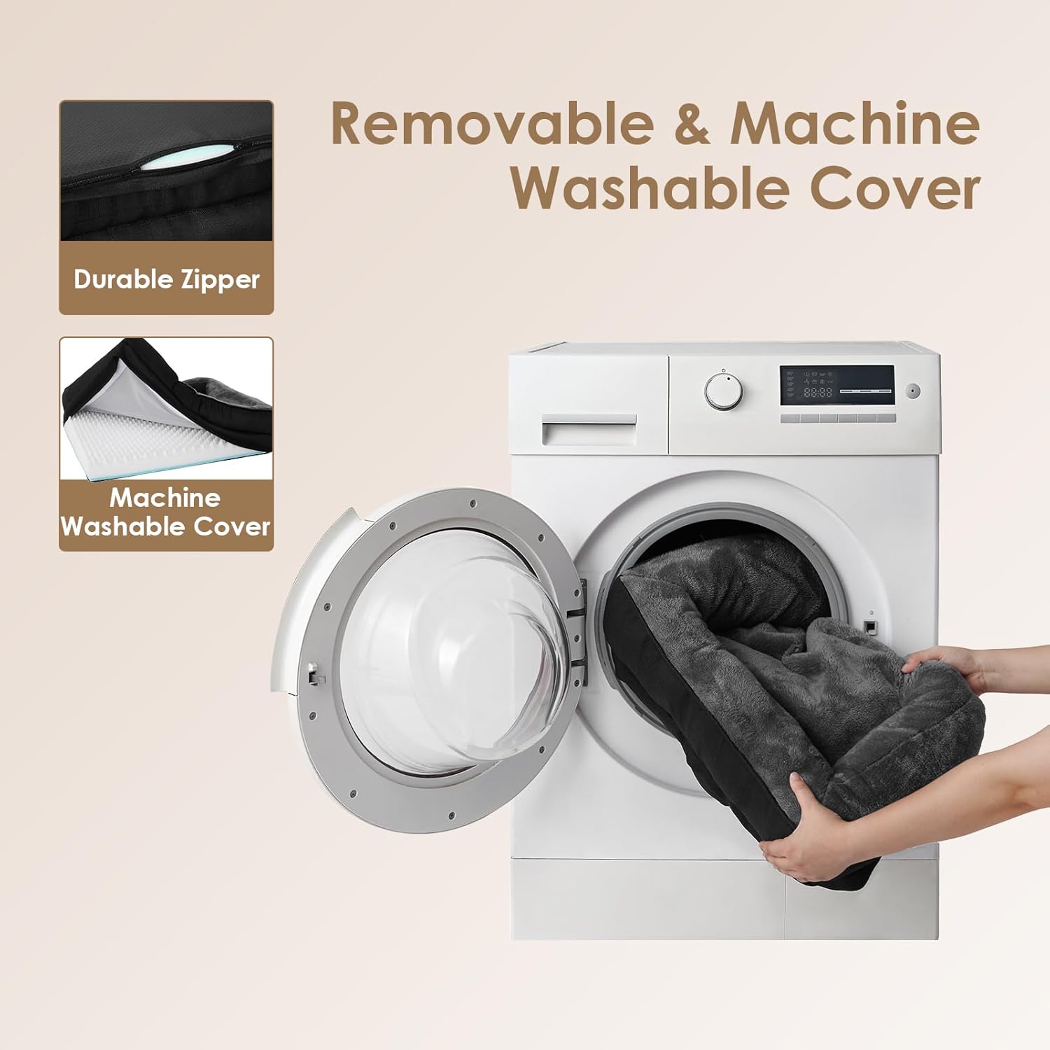- CARE GUIDELINES: This pet bed retreat boasts a removable, machine-washable cover with a convenient zipper. Simply extract the foam core and launder the cover. Kindly remember, the foam insert is not designed for washing. Postunpacking, allow 24-48 hours for the bed to fully inflate.