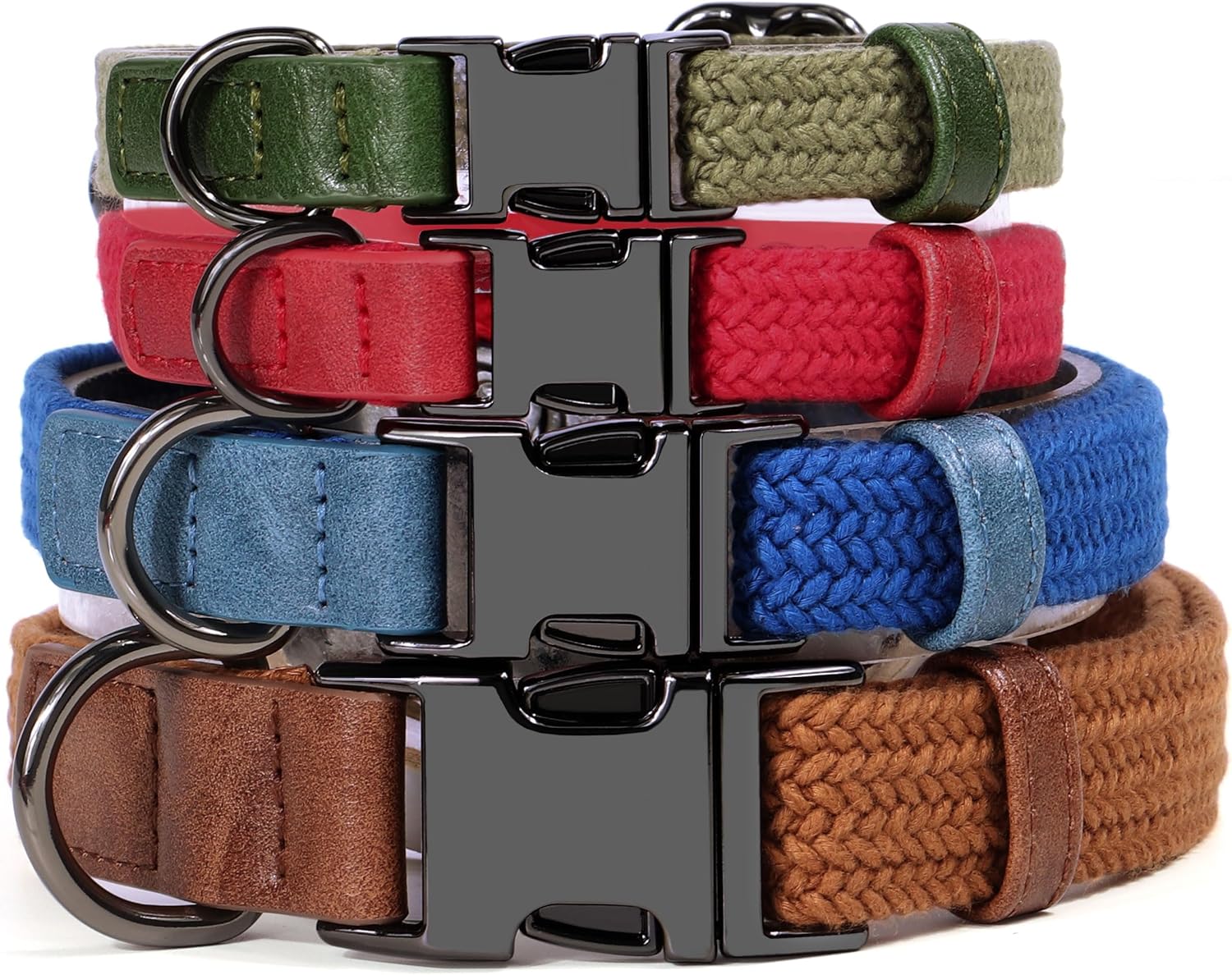 - Superior Material Blend: Crafted from high-density webbing fabric with smooth stitching. The high quality cotton material is extremely soft, which is like giving your pet a gentle hug, suitable for all dog skin types. The combination with PU leather gives it a unique and stylish look