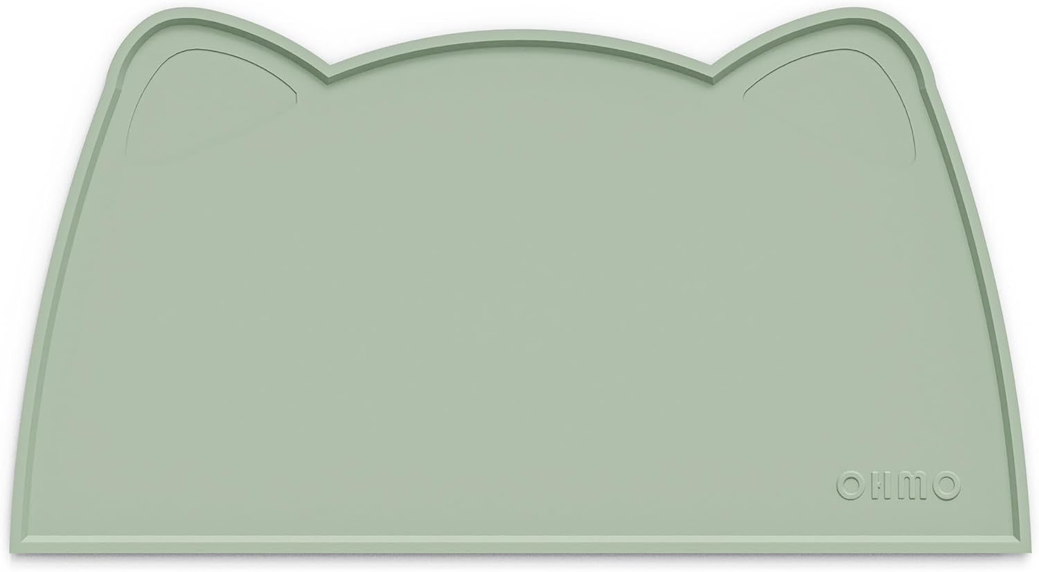 OHMO - Cat Food Mat, Silicone Pet Feeding Mat for Floor Non-Skid Waterproof Dog Water Bowl Tray, Easy to Clean Pet Placemat (Sage Green, 20 * 12'')