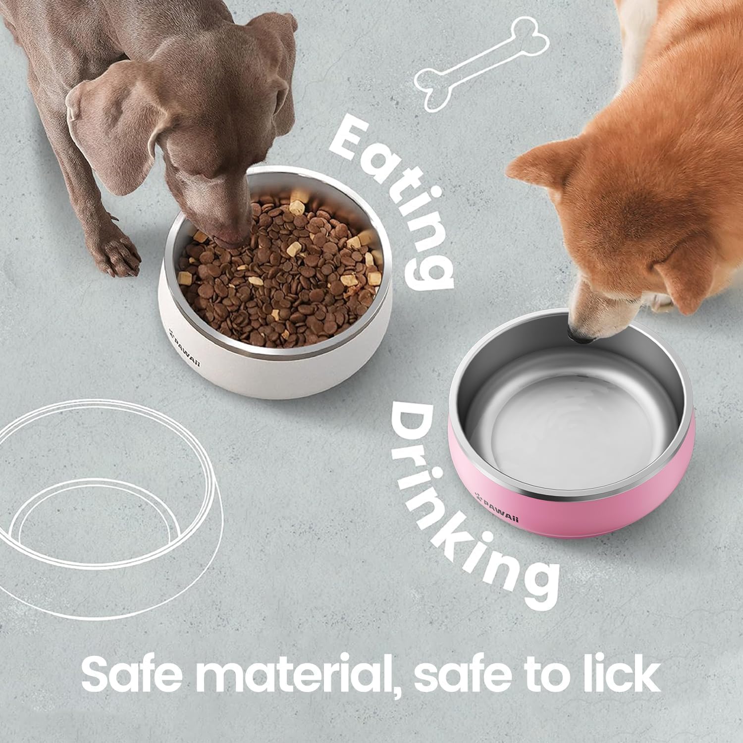 - 𝐀 𝐛𝐫𝐞𝐞𝐳𝐞 𝐭𝐨 𝐜𝐥𝐞𝐚𝐧: You can wash this dog food bowl in a dishwasher or manually. Pawaii stainless steel dog bowl repels oil, does not hide dirt, and can be cleaned by simple flushing.