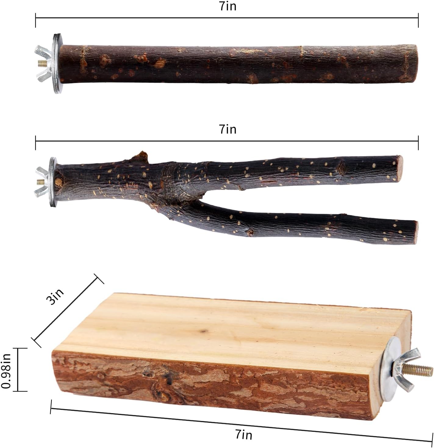 - Safe Chewing Material: Made from premium, untreated natural soft fir wood , and apple wood, those wood perchs for bird cages are ideal for birds to chew and gnaw, helping to keep their beak conditioned and shaped.