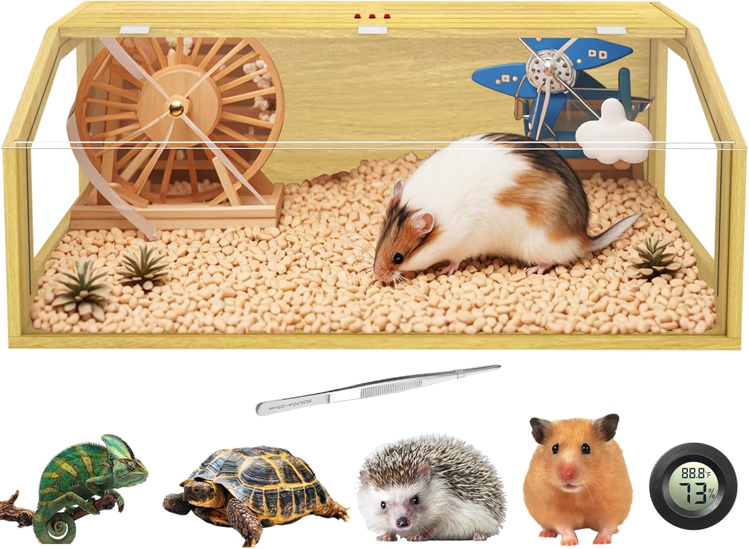 - Warm Wood Vibes: Unlike cold and neutral tones that lack warmth, the warm wood tones mimic natural environments, creating a comfortable and relaxing atmosphere for your hamster; This soothing color scheme helps reduce stress and anxiety, providing a healthier and happier environment for your small animal