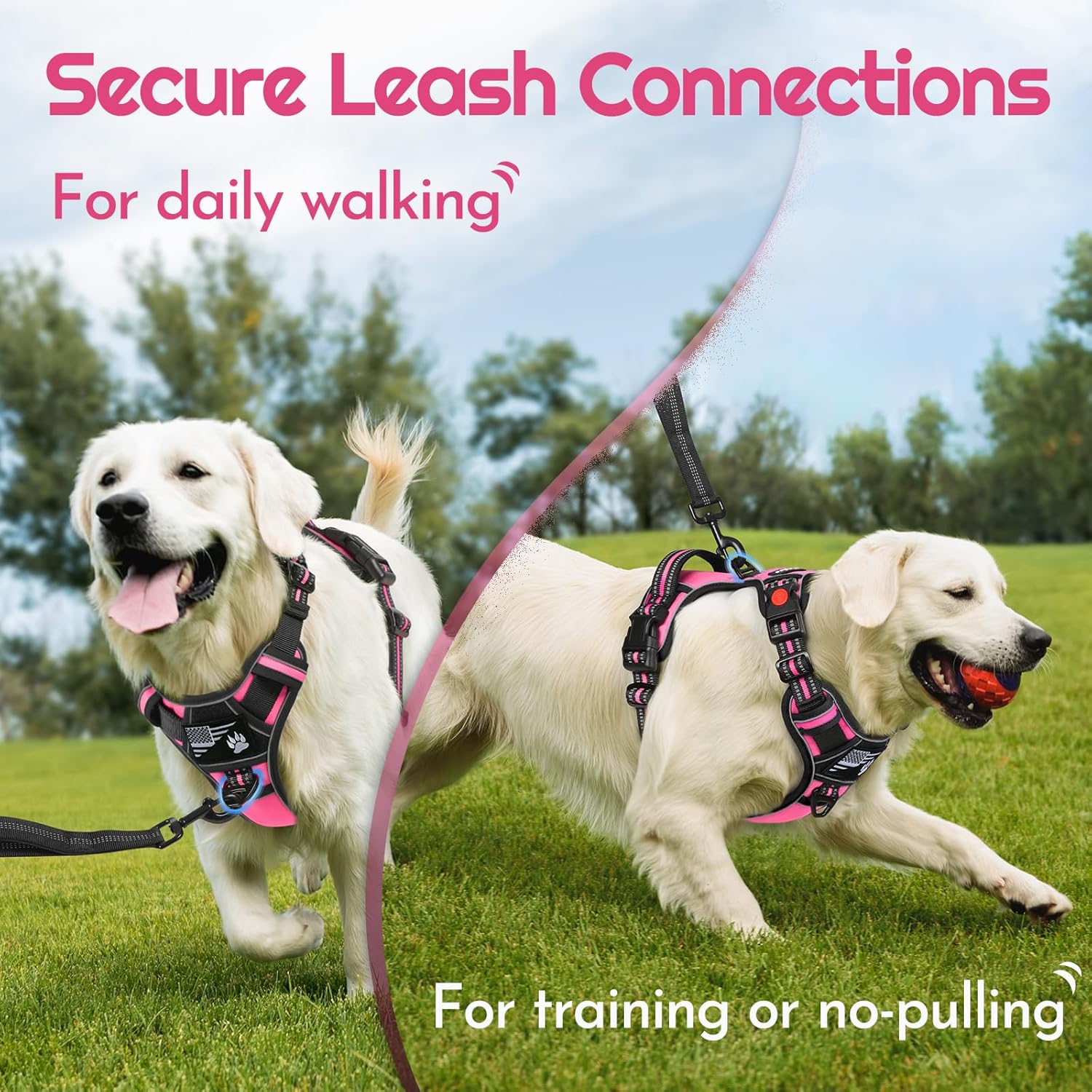 - Easy to Apply: With 3 buckles, the harness allows to be opened more fully, making it easier and quiker to put on and take off. More important, it avoids going over dog's head while wearing, preventing dogs from resistance and discomfort. Featured with a secure lock at neckline, it protects against accidental release during pet's activities