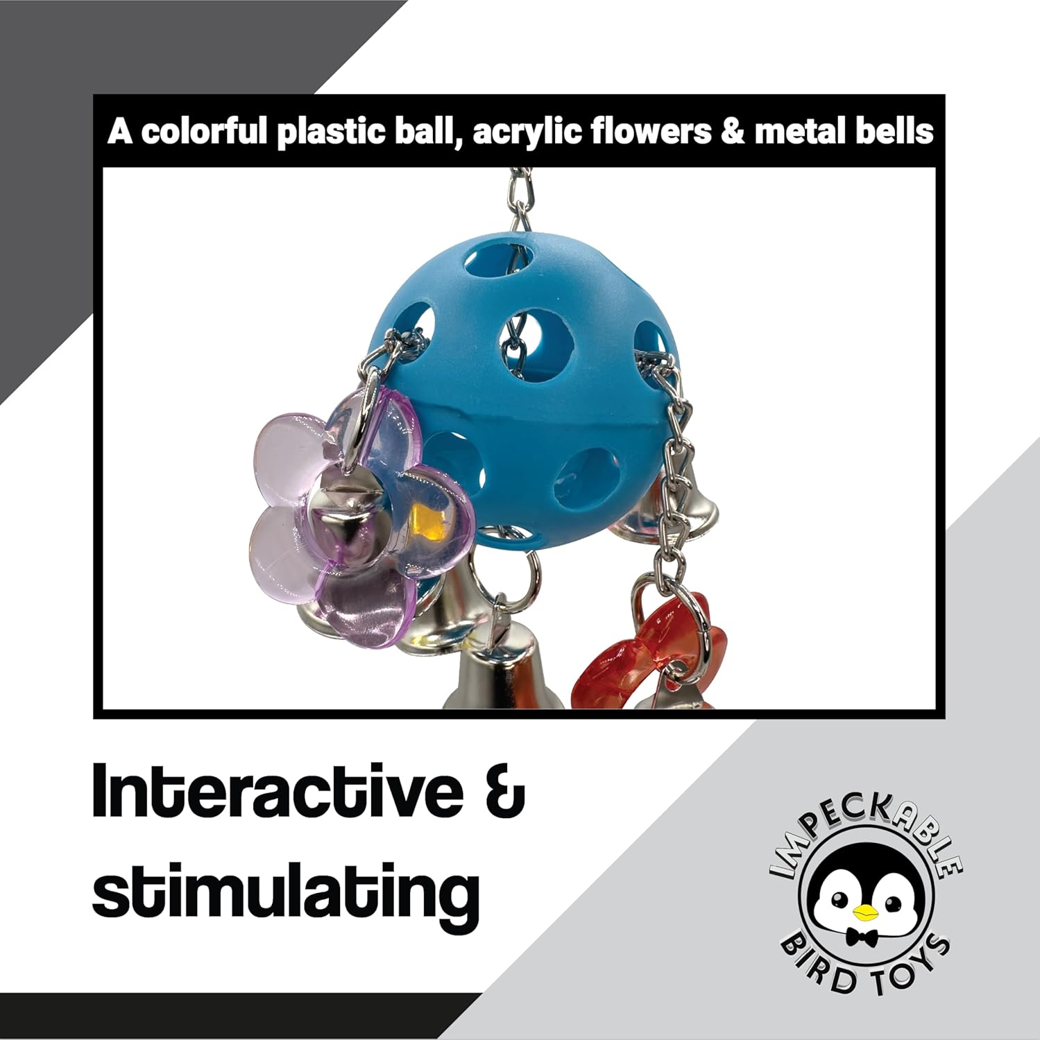1937 Flower Ringer with Acrylic Flowers, Bells and Chain Links – Handcrafted Great for Conures, African Greys, Amazons and Medium Size Birds
