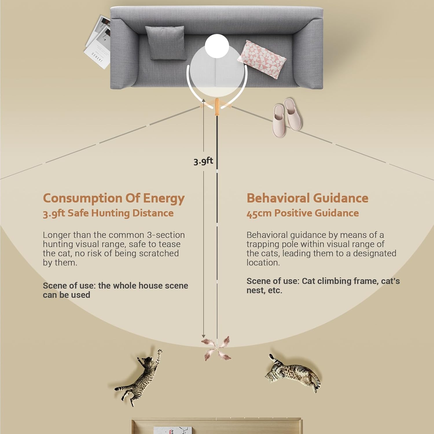 - Cat Fishing Pole Toys with Innovative 4-Section Design: The cat fishing pole extends to an impressive 53.15in, giving the kitty ample space to run and jump with glee. After playtime, the toys conveniently retract to 16in for easy storage.