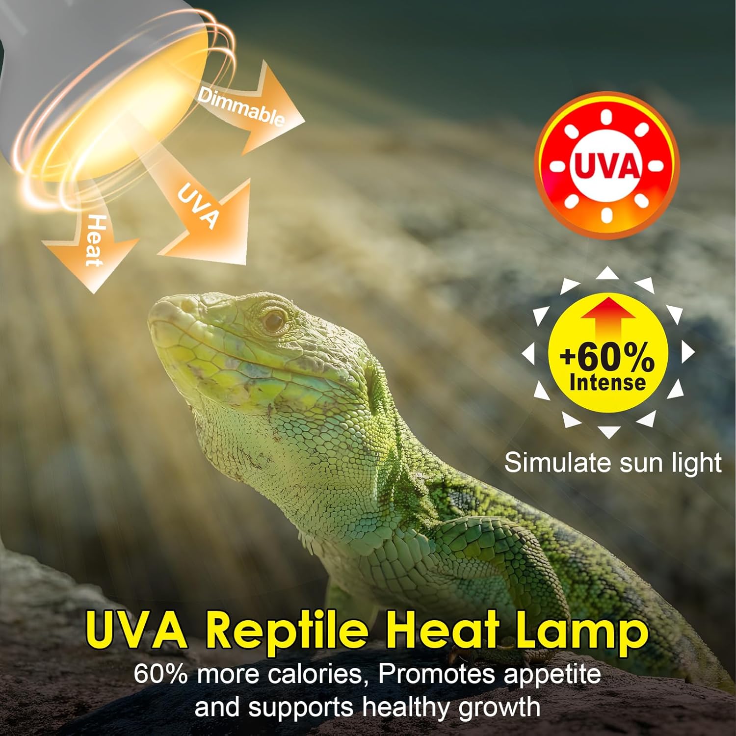 - UVA Sunlight Simulation for Healthy Behavior: Designed with UVA functionality to mimic natural sunlight, this reptile heat bulb encourages basking and supports your pet’s circadian rhythm, promoting overall health and well-being. Perfect for reptiles like turtles, lizards, tortoises, bearded dragons, geckos, and even chickens.