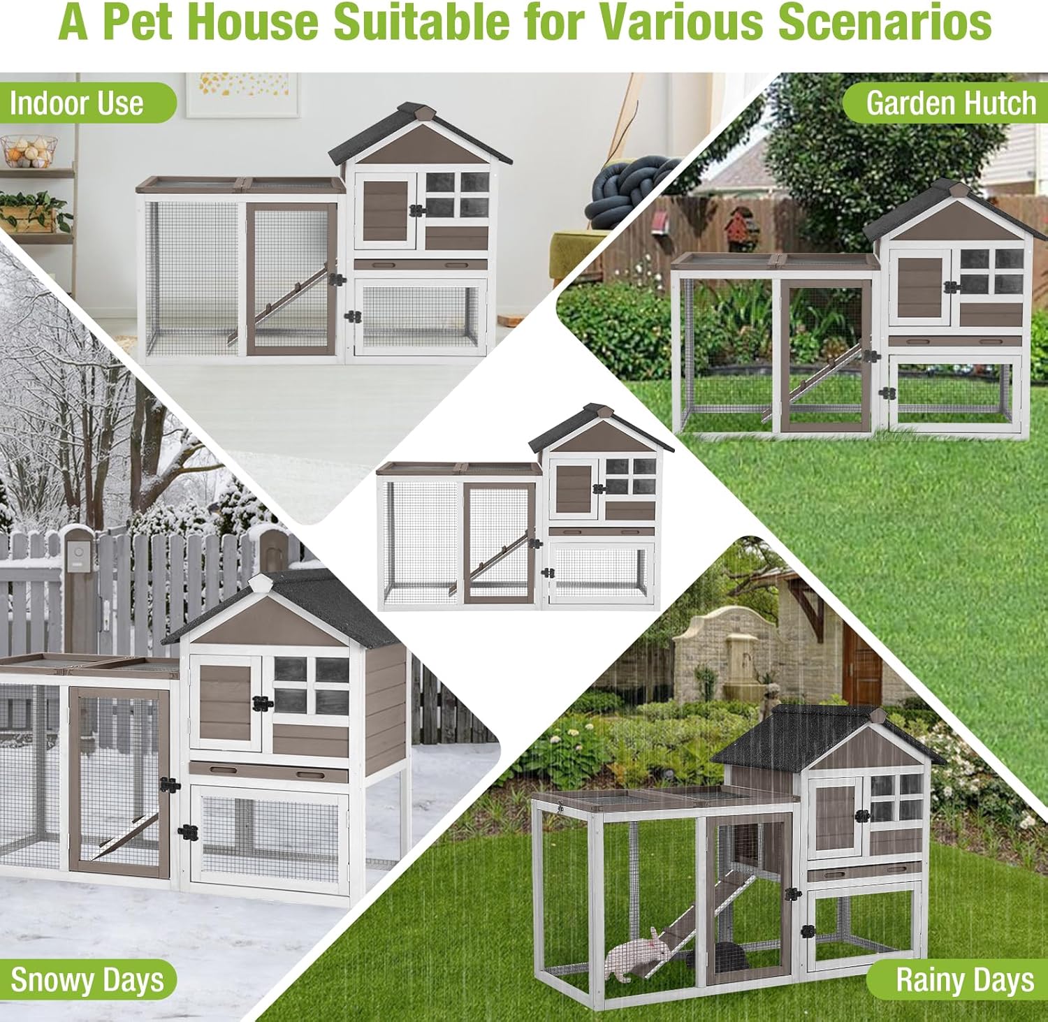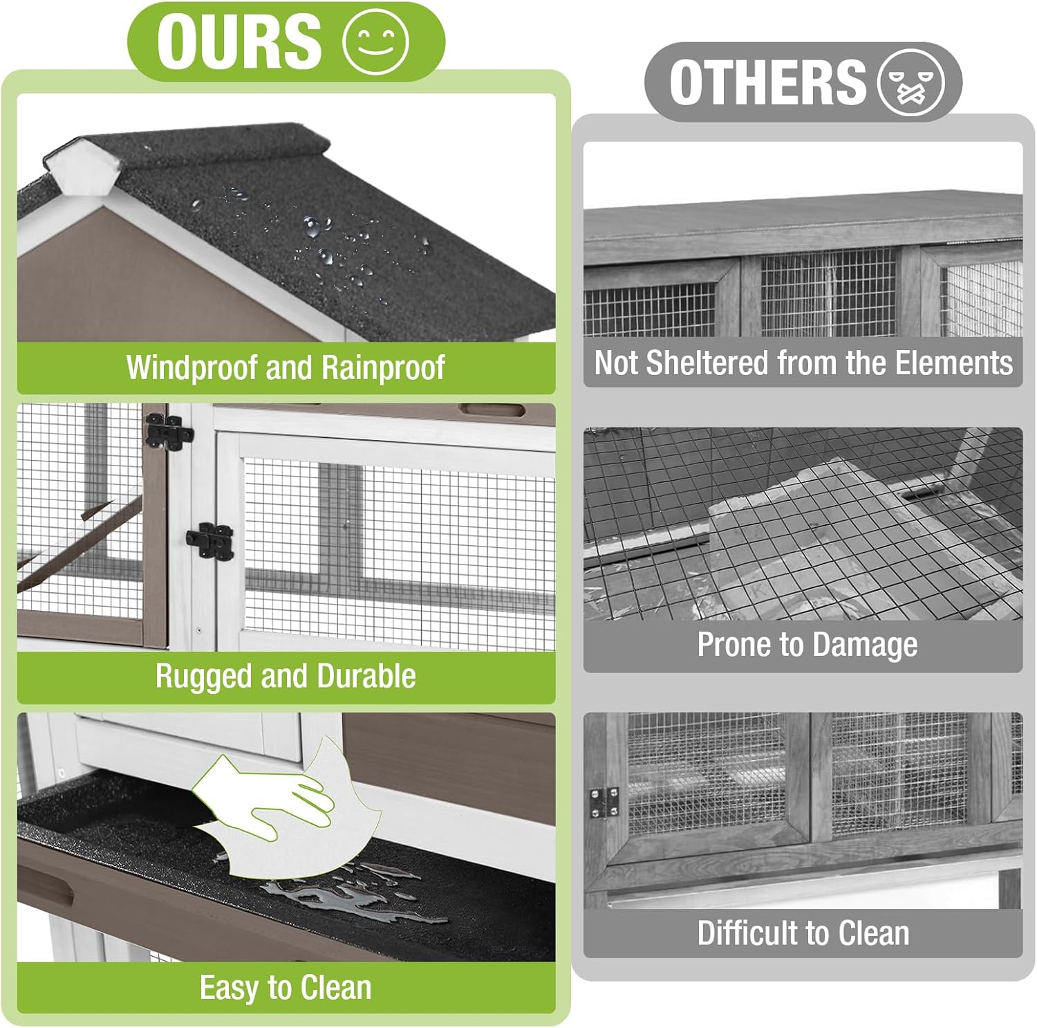 - EASY TO CLEAN: The rabbit hutch features a deeper, waterproof pull-out tray that won't leak and is easy to clean
