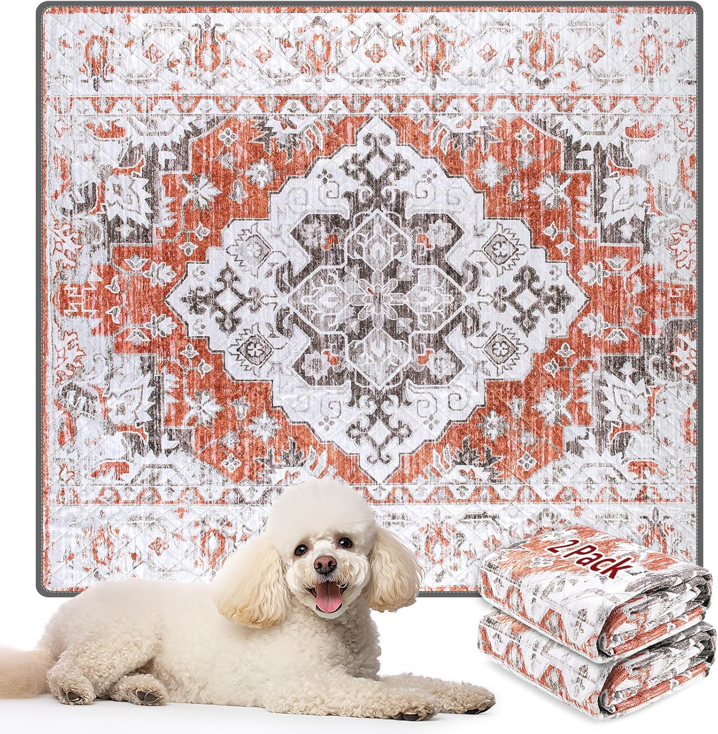 LOOBANI Reusable Pee Pads for Dogs, 2 Pack Super Absorbent Washable Puppy Pee Pads, Waterproof Non-Slip Whelping Pad for Floor Playpen Crate Couch-18 x24 (Red-Orange)