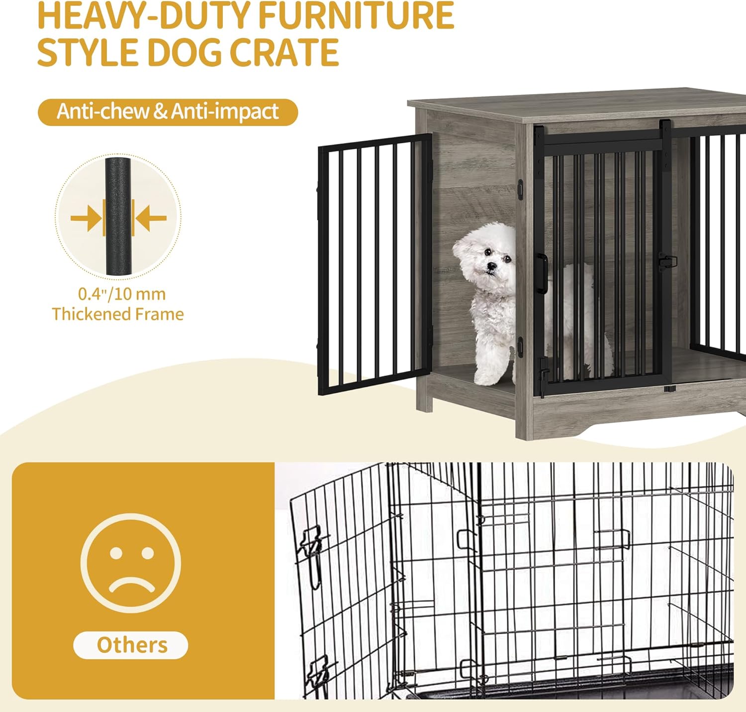 - Superior Material: Our wooden dog crate furniture is built to last. The boards are made of engineered wood with wear-resistant and easy-to-clean surface. This dog crate frame is made out of FSC-Certified wood