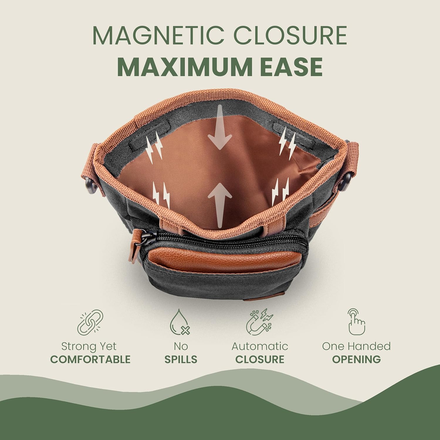 • 【EFFORTLESS ONE-HANDED ACCESS】 - The magnetic closure of this puppy treat pouch ensures fast access to treats, allowing you to reward your dog effortlessly during training sessions or walks without breaking the flow.