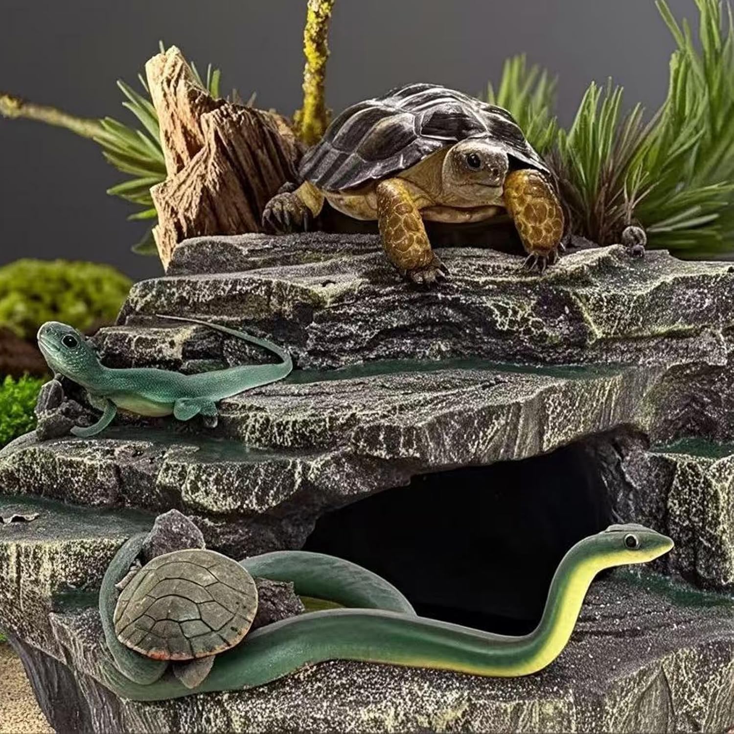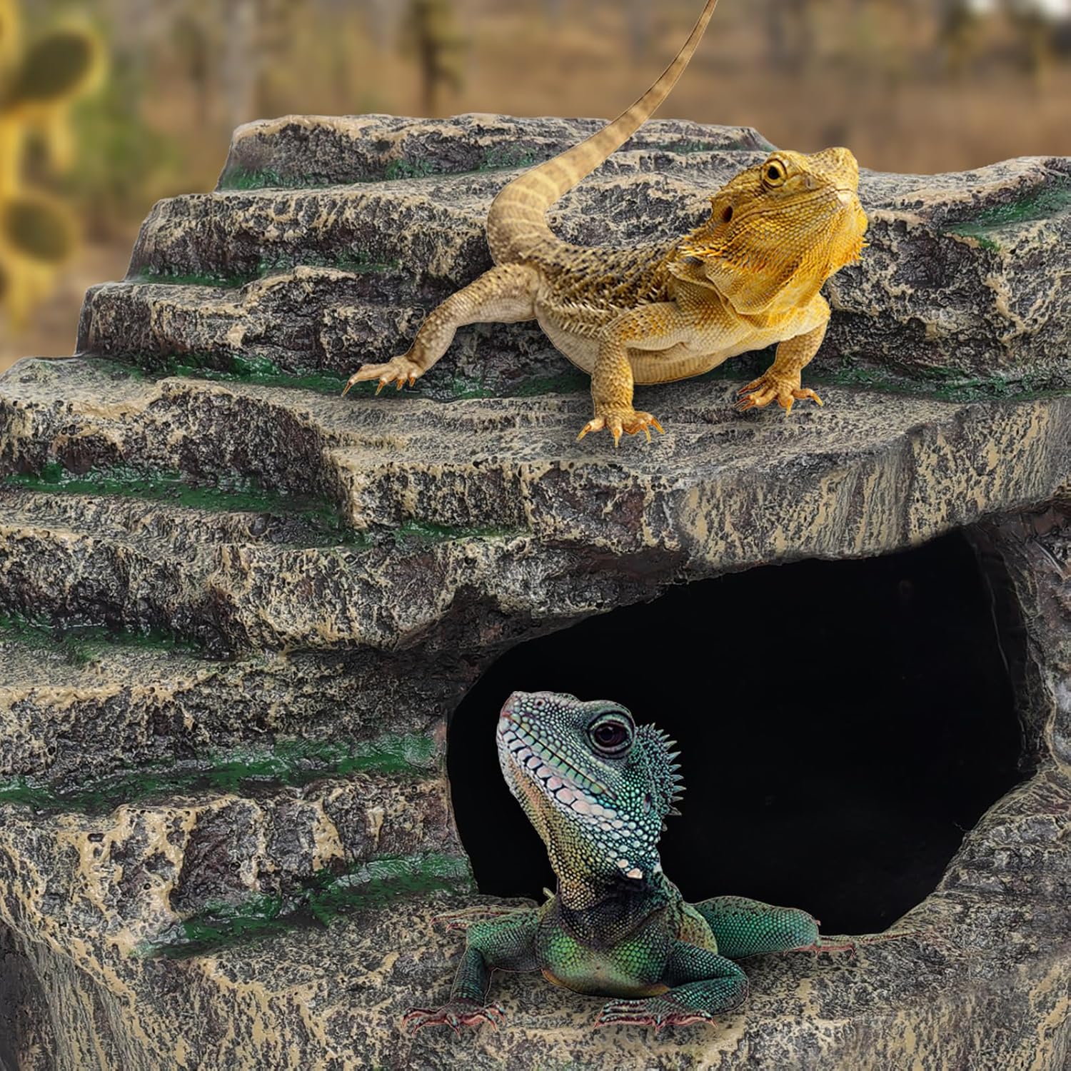 - MIMIC NATURE LOOKING: Our large reptile hide, such as the snake hide and lizard hides, also humid hide for leopard gecko, are designed to mimic natural habitats. Essential for crested gecko tank accessories and leopard gecko tank accessories ensuring a healthy and engaging environment. Perfect for snake enclosure accessories and ball python tank accessories,bearded dragon basking platform.