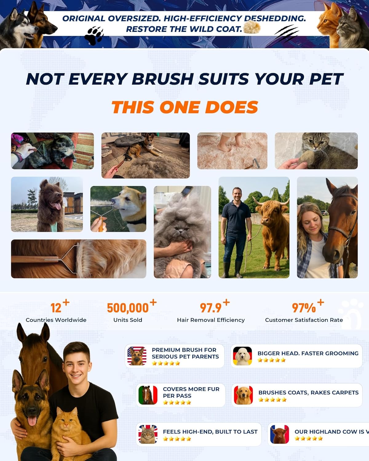 - ✂️【Effortless Mat and Tangle Removal】Easily remove stubborn mats and tangles with KIZO ESLO️ professional-grade extra larger dog brush for deshedding. Designed for both cats and dogs of medium or long coat length, like German Shepherd, Husky, Bernese Mountain Dog, this professional grooming tool ensures a smooth, pain-free grooming experience, leaving your pet's coat healthy and neat.