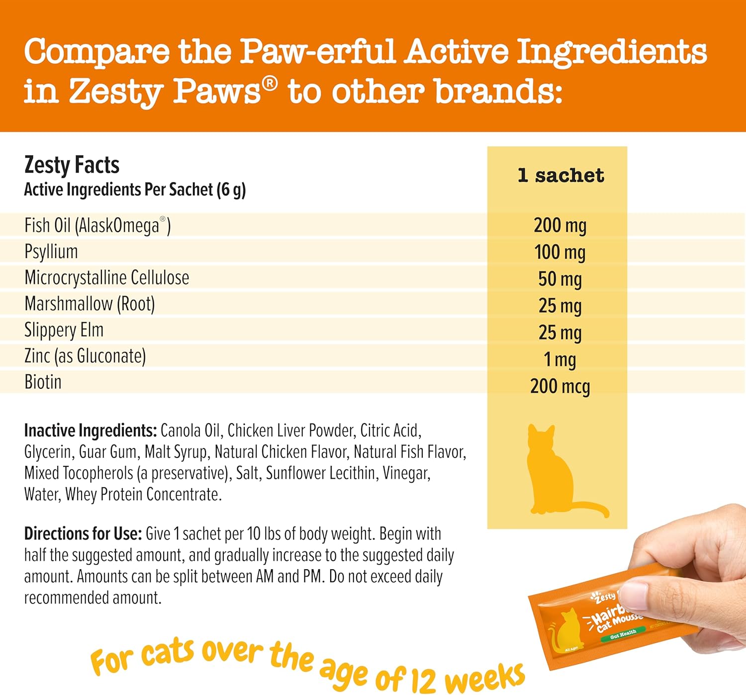 - Put the "Squeeze" on Pesky Hairballs - Zesty Paws Hairball Cat Squeeze Treats provides your pet with a tasty squeeze of ingredients that target hairball formation, gut function, and skin health.