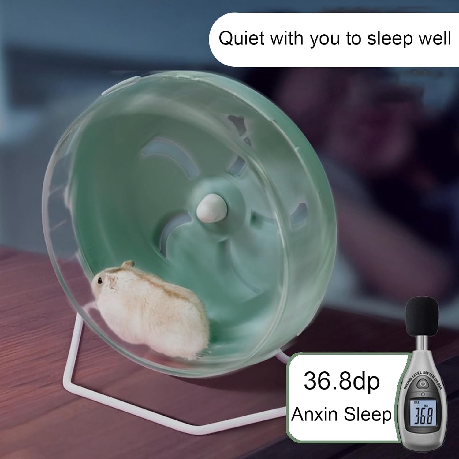 Jeeone Silent Hamster Wheel 7 inch, Hamster Exercise Wheel, Height-Adjustable Hamster Wheel Cage Accessories, Hamster Running Toys Small Animals Exercise Wheels (Green)