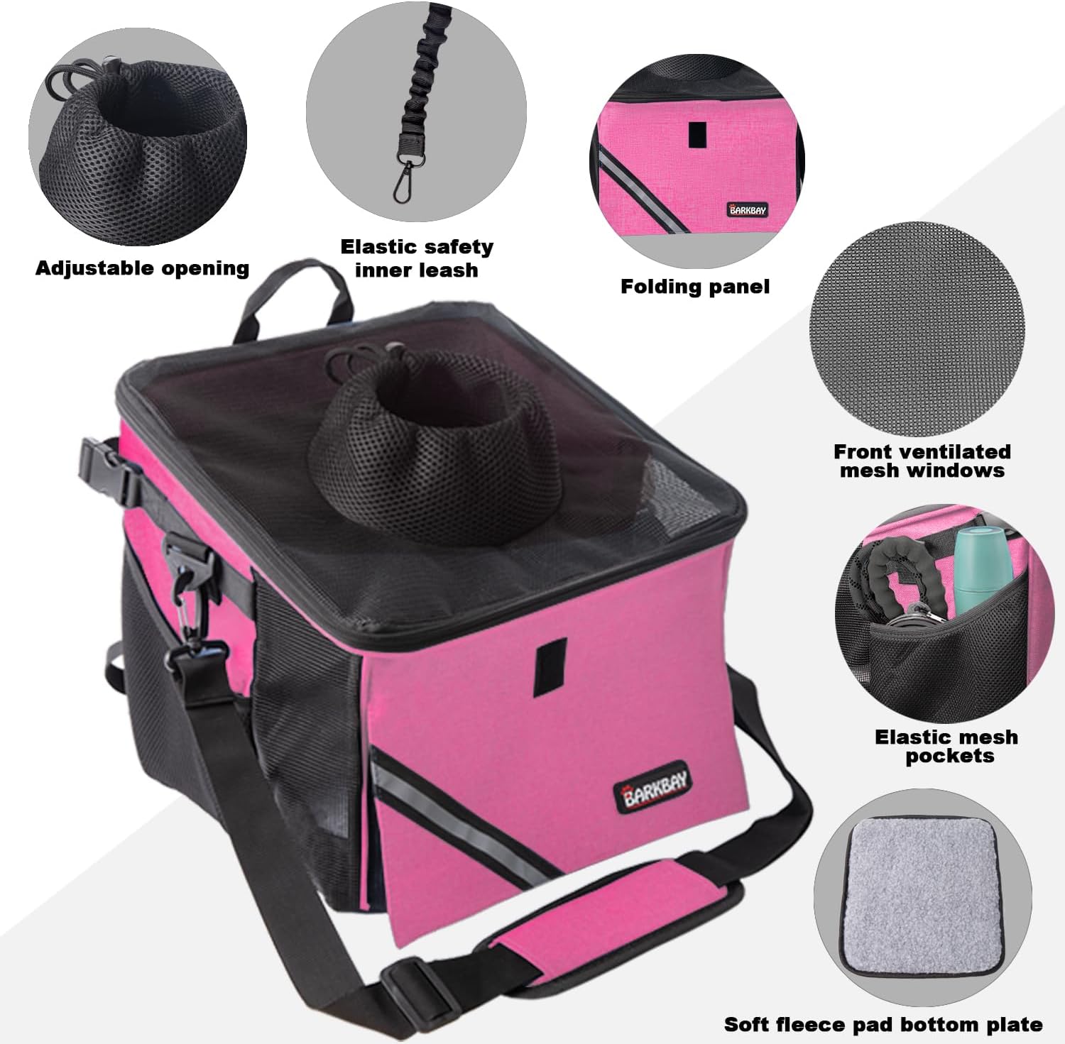 Pet Carrier Bicycle Basket Bag Pet Carrier/Booster Backpack for Dogs and Cats with Big Side Pockets,Comfy & Padded Shoulder Strap,Travel with Your Pet Safety(Pink Carnation)