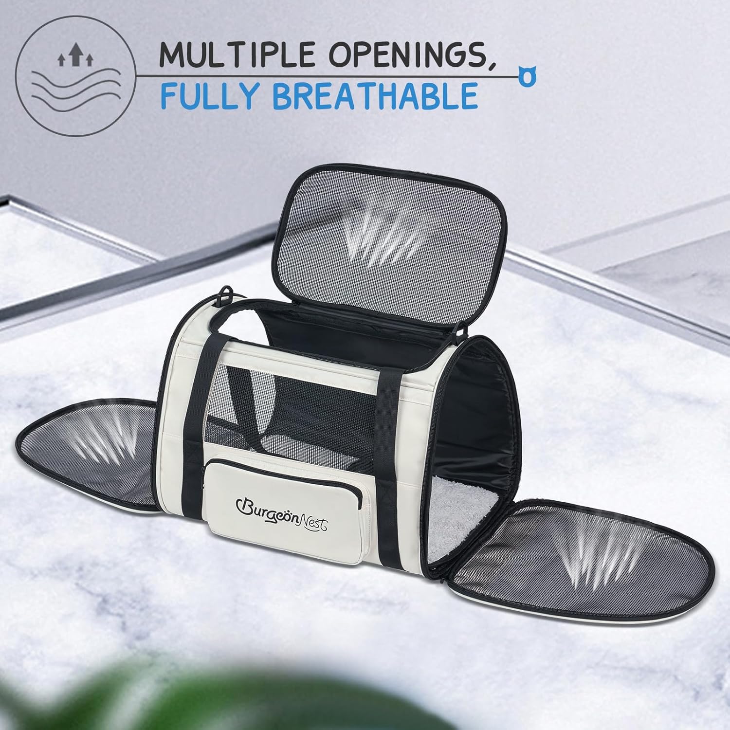 - Well-made Large Cat Carrier: With upgraded memory metal for sturdy frame, this cat carrier for 2 cats does not collapse. Made of breathable fabric, BurgeonNest cat carrier has 3 doors to open, it is more convenient to put your dog cat in or out. Plush cushion with sturdy bottom inserts ensures comfortable environment for pets.