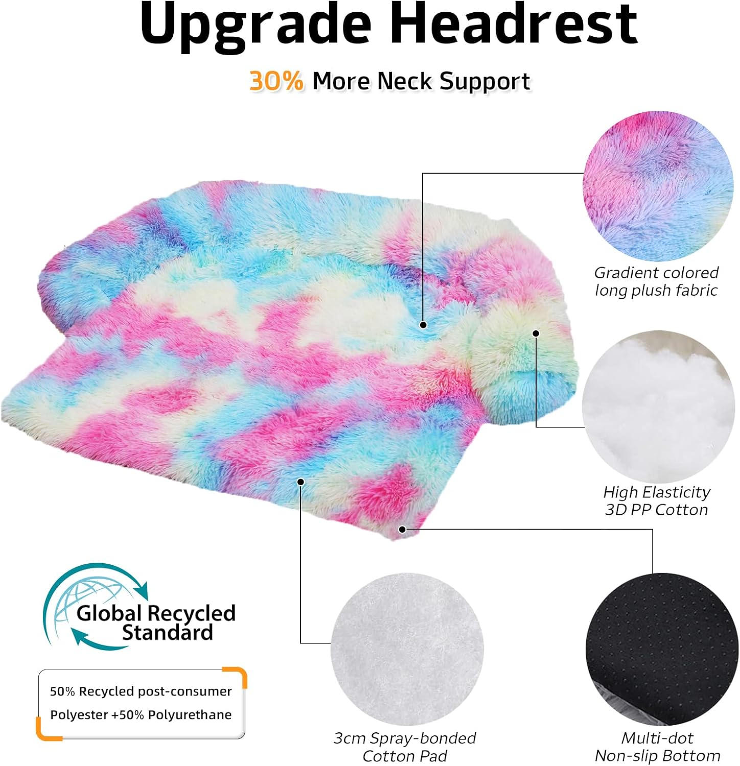 GGIB Calming Dog Bed Fluffy Plush Dog Mat for Furniture Protector with Removable Washable Cover for Large Medium Small Dogs and Cats (Medium, Rainbow)
